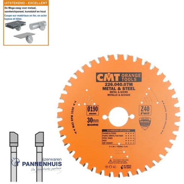 CMT Cirkelzaag HW 190x30x2 Z40 Ferro- en non-ferro metalen, sandwich panelen