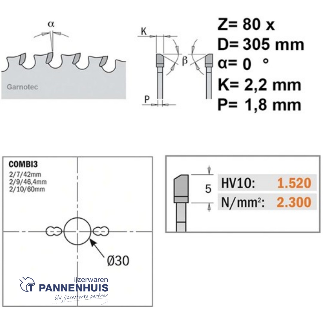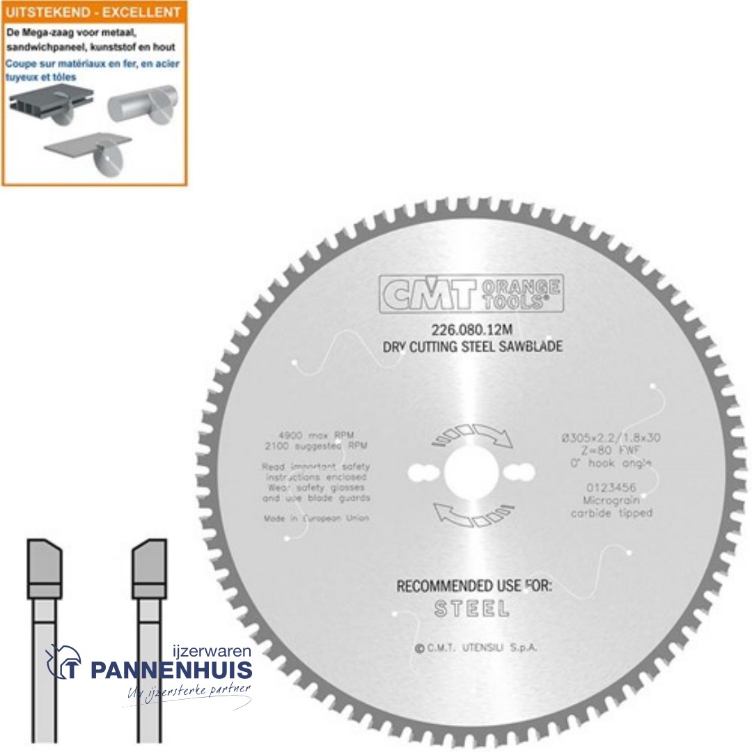 CMT Cirkelzaag HW 305x30x2,2 Z80 Ferro- en non-ferro metalen, sandwich panelen
