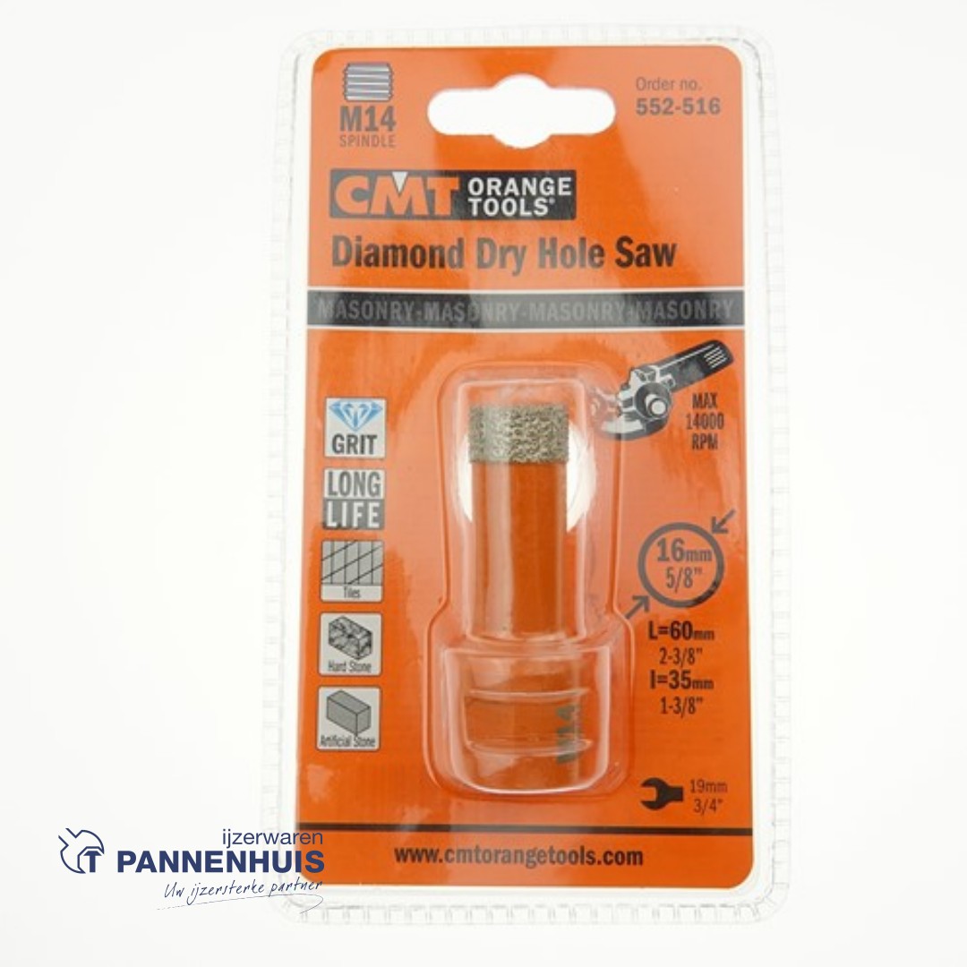 De CMT-gatzagen met een diamantgruiskraag zijn speciaal ontwikkeld voor pro- fessionals die willen boren in extreem harde materialen zoals keramiektegels (porselein, gres, graniet, harde steen), glasvezelversterkte polyester, gipsplaat en Perspex. Deze gatzagen garanderen uitmuntende prestaties en superieure standtijden, zelfs bij het zagen in de allerhardste materialen (marmer, graniet, keramische tegels …).