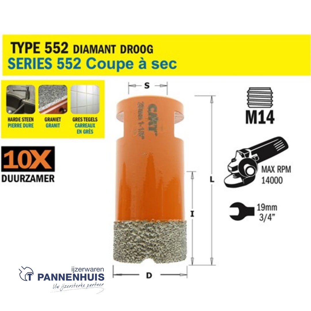 De CMT-gatzagen met een diamantgruiskraag zijn speciaal ontwikkeld voor pro- fessionals die willen boren in extreem harde materialen zoals keramiektegels (porselein, gres, graniet, harde steen), glasvezelversterkte polyester, gipsplaat en Perspex. Deze gatzagen garanderen uitmuntende prestaties en superieure standtijden, zelfs bij het zagen in de allerhardste materialen (marmer, graniet, keramische tegels …).