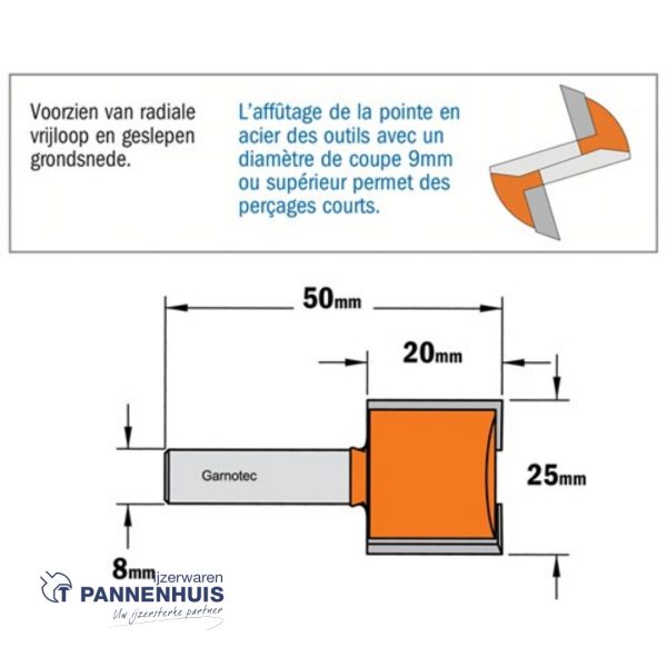 CMT Groeffrees met rechte snijkoppen, HW D=25 x 20mm L=50 S=8 Z2