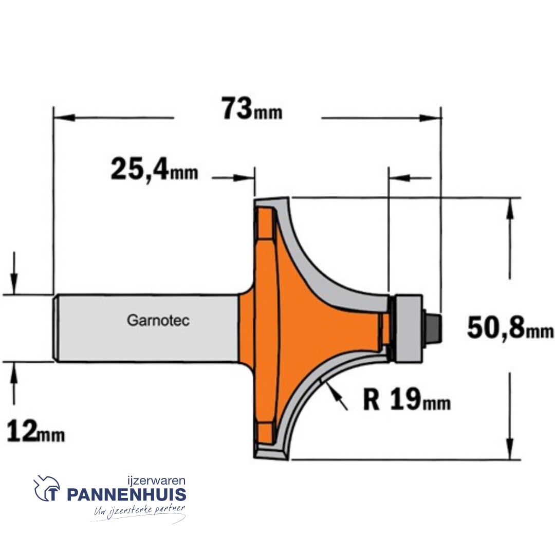 CMT Holle radiusfrees zonder opstaande kant, HW D=50,8 x 25.4mm R=19 L=73 S=12 Z2
