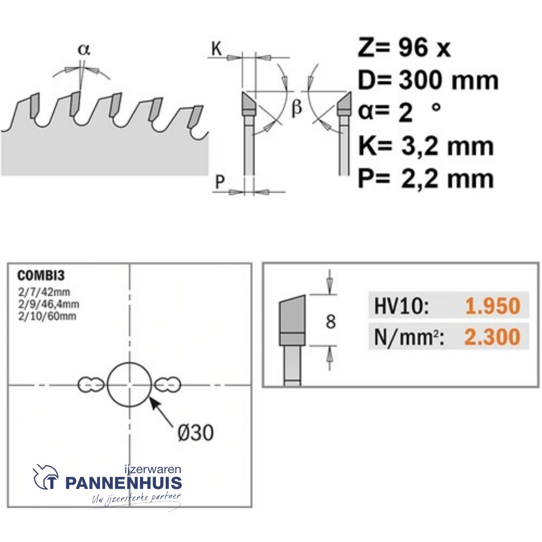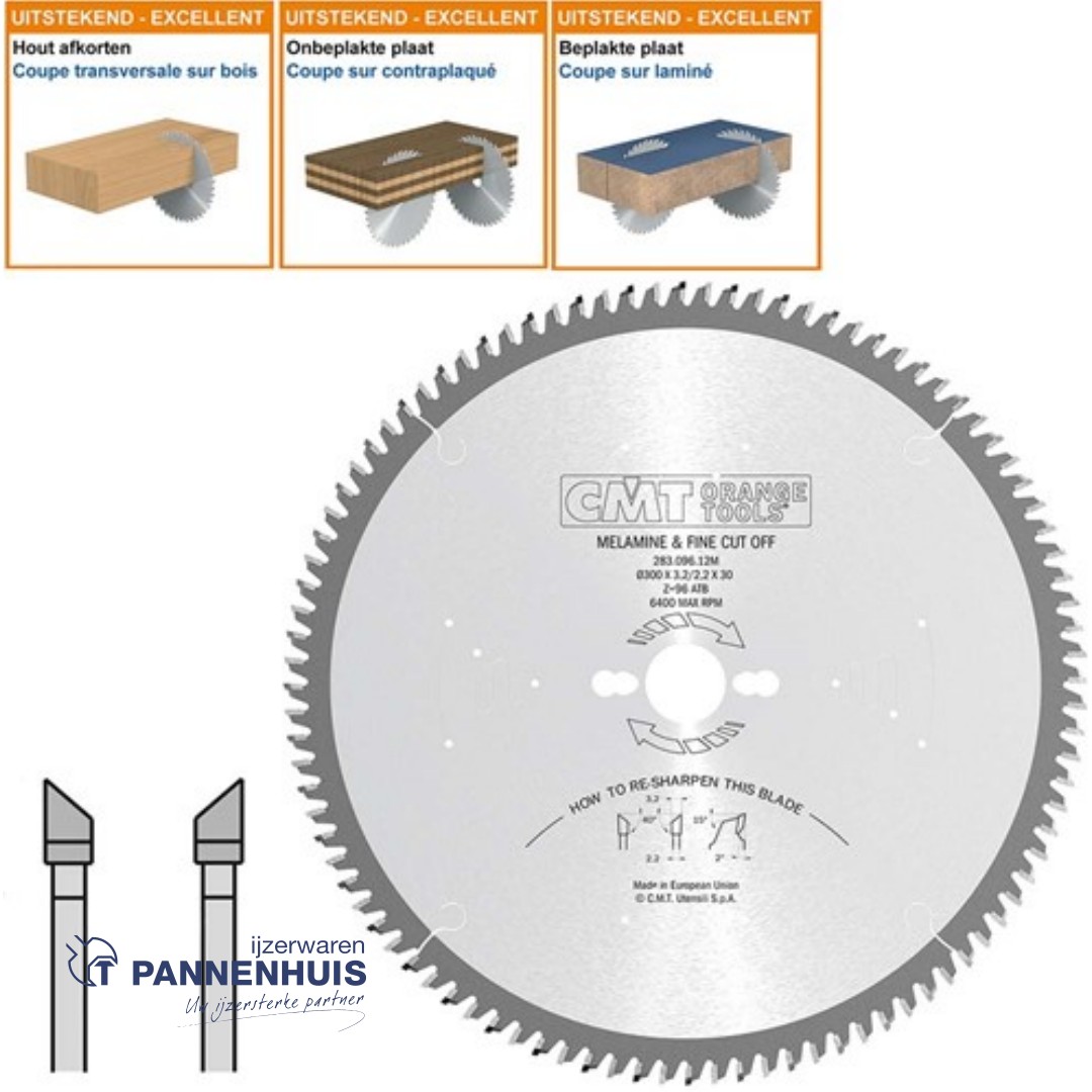 CMT Platencirkelzaag HW 300x30x3,2 Z96 Melamine, Dunne houtsoorten