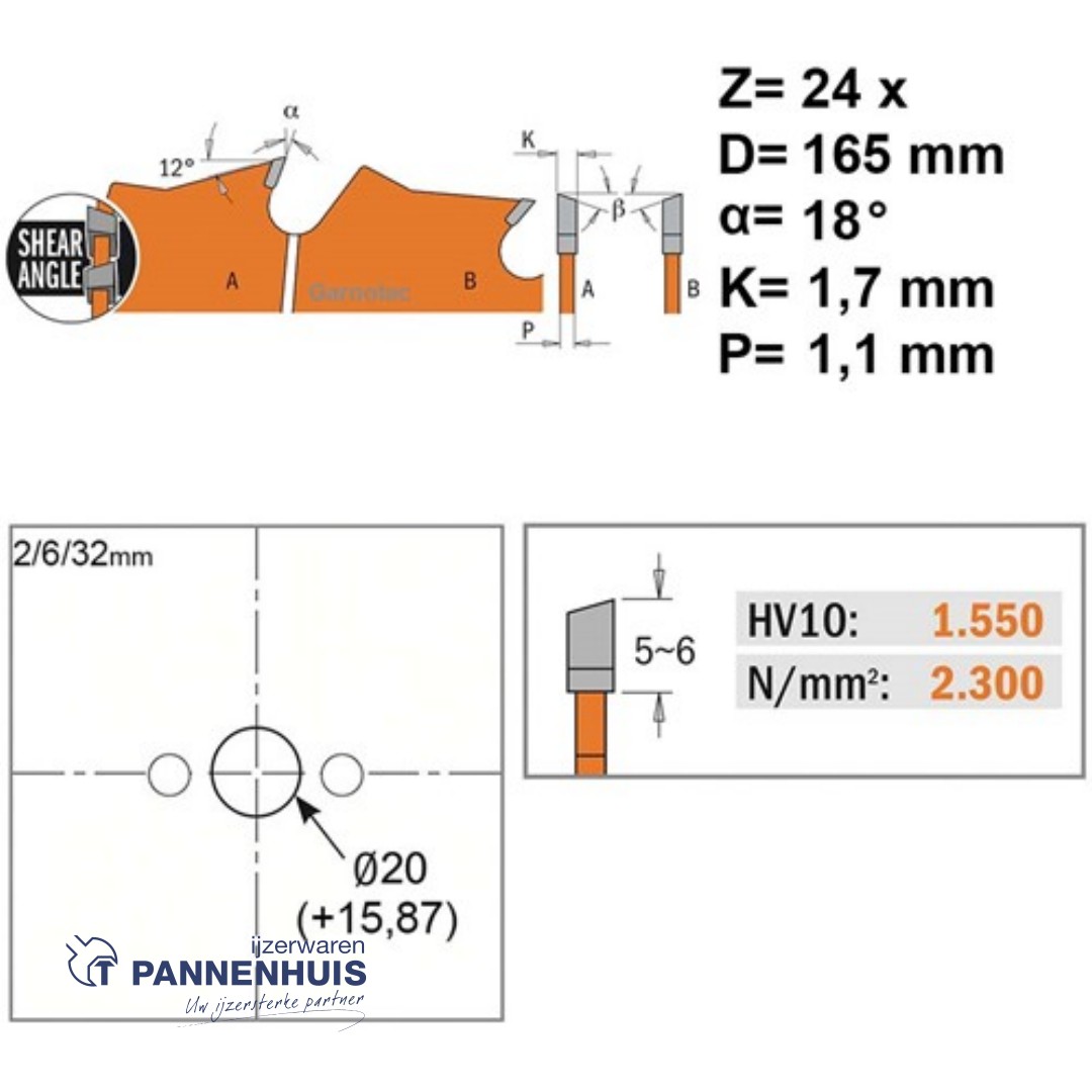 CMT Schulpcirkelzaag HW 165×20(+15,87)x1,7 Z24 Massieve houtsoorten, Multiplex