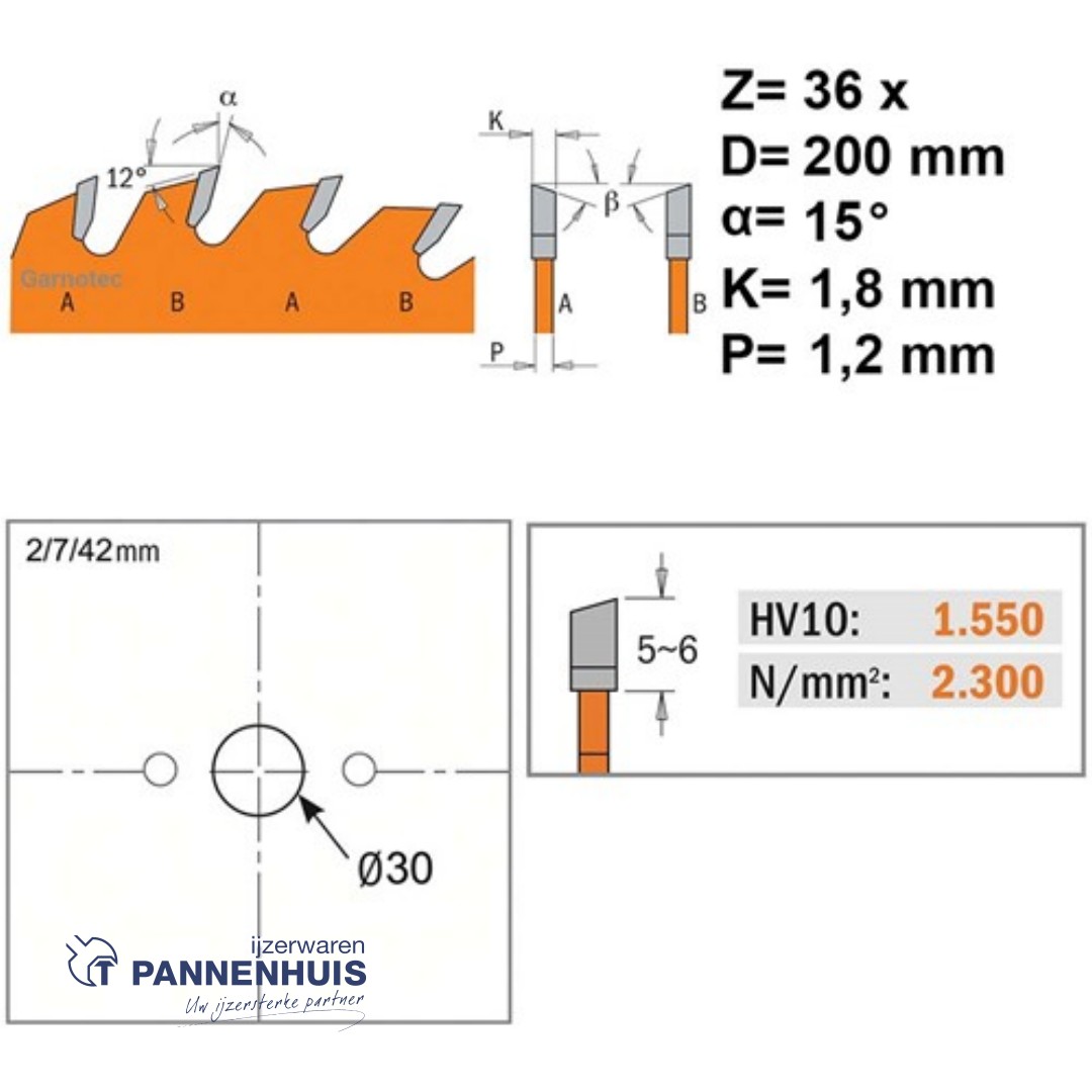 CMT Schulpcirkelzaag HW 200x30x1,8 Z36 Massieve houtsoorten, Multiplex
