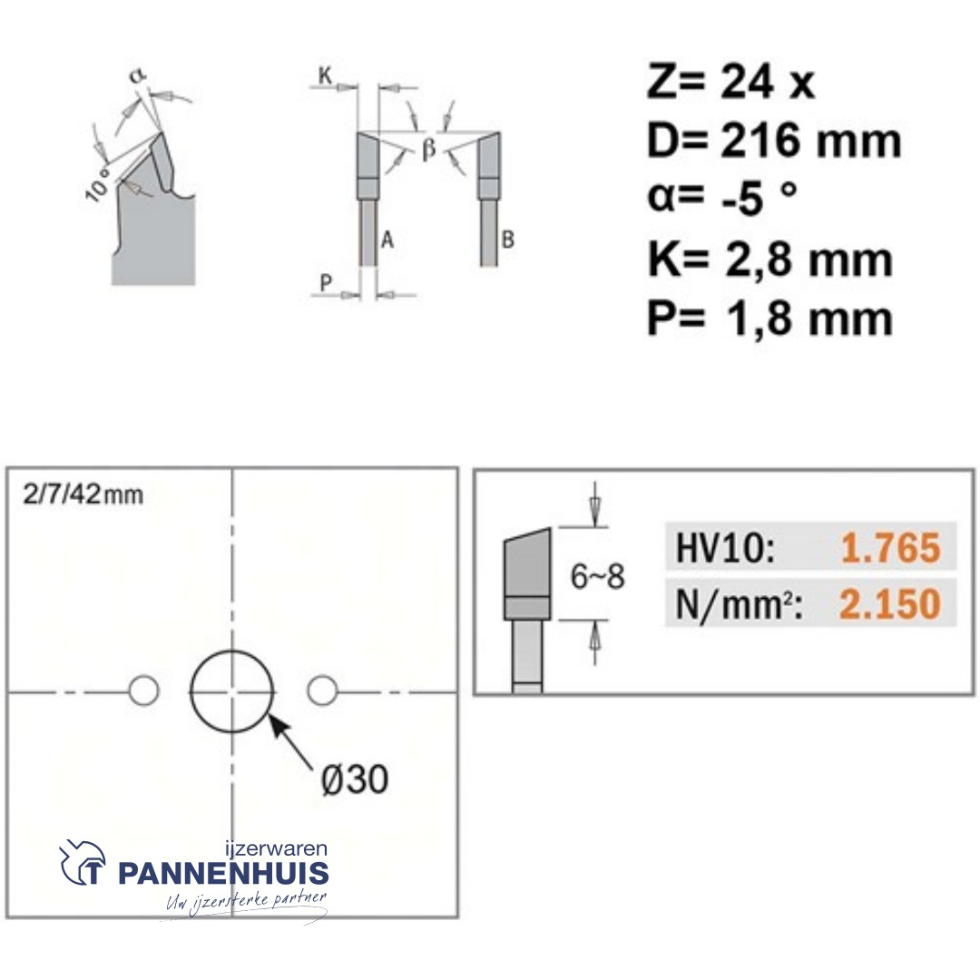 CMT Schulpcirkelzaag HW 216x30x2,8 Z24 Massieve houtsoorten