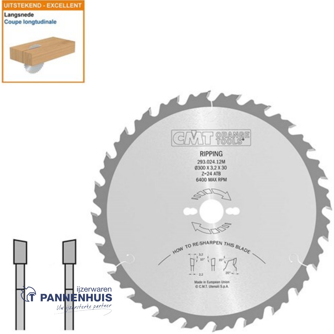 CMT Schulpcirkelzaag HW 300x30x3,2 Z24 Massieve houtsoorten
