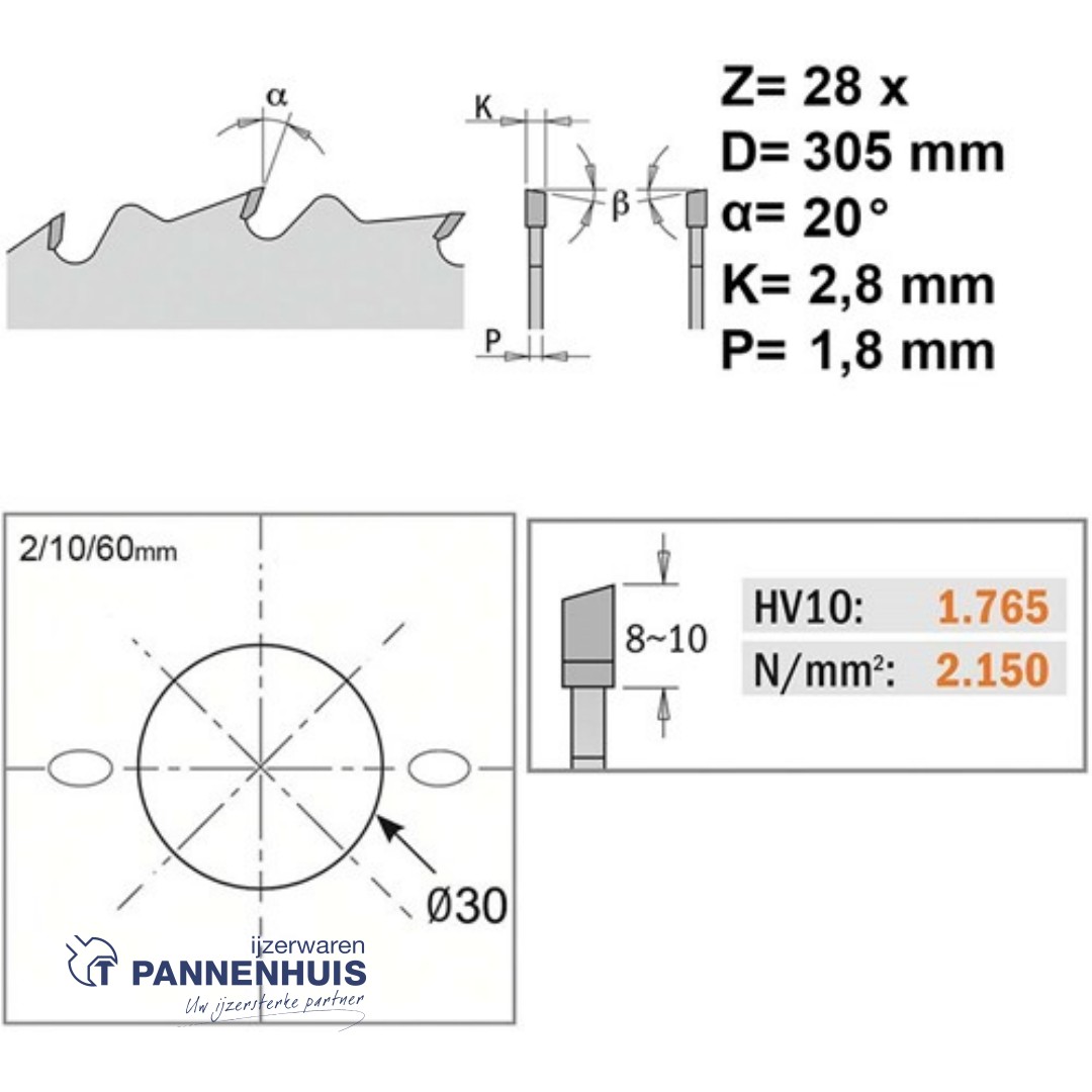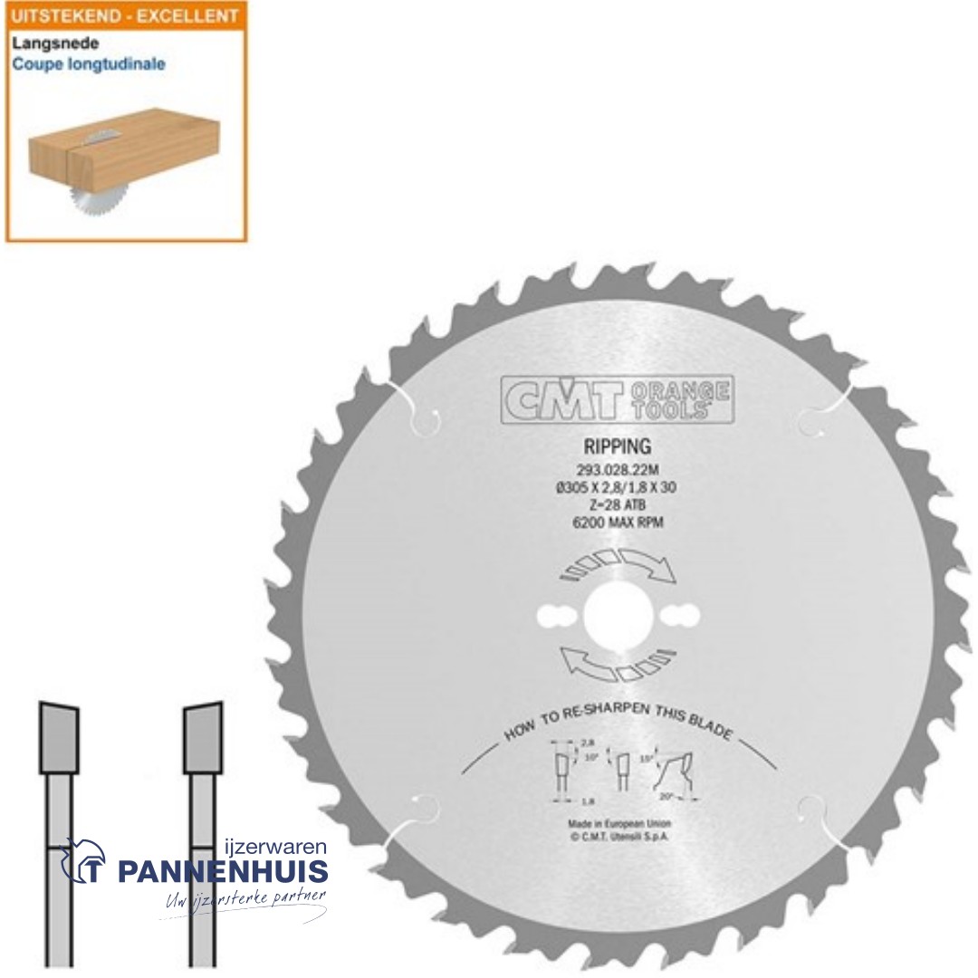 CMT Schulpcirkelzaag HW 305x30x2,8 Z28 Massieve houtsoorten