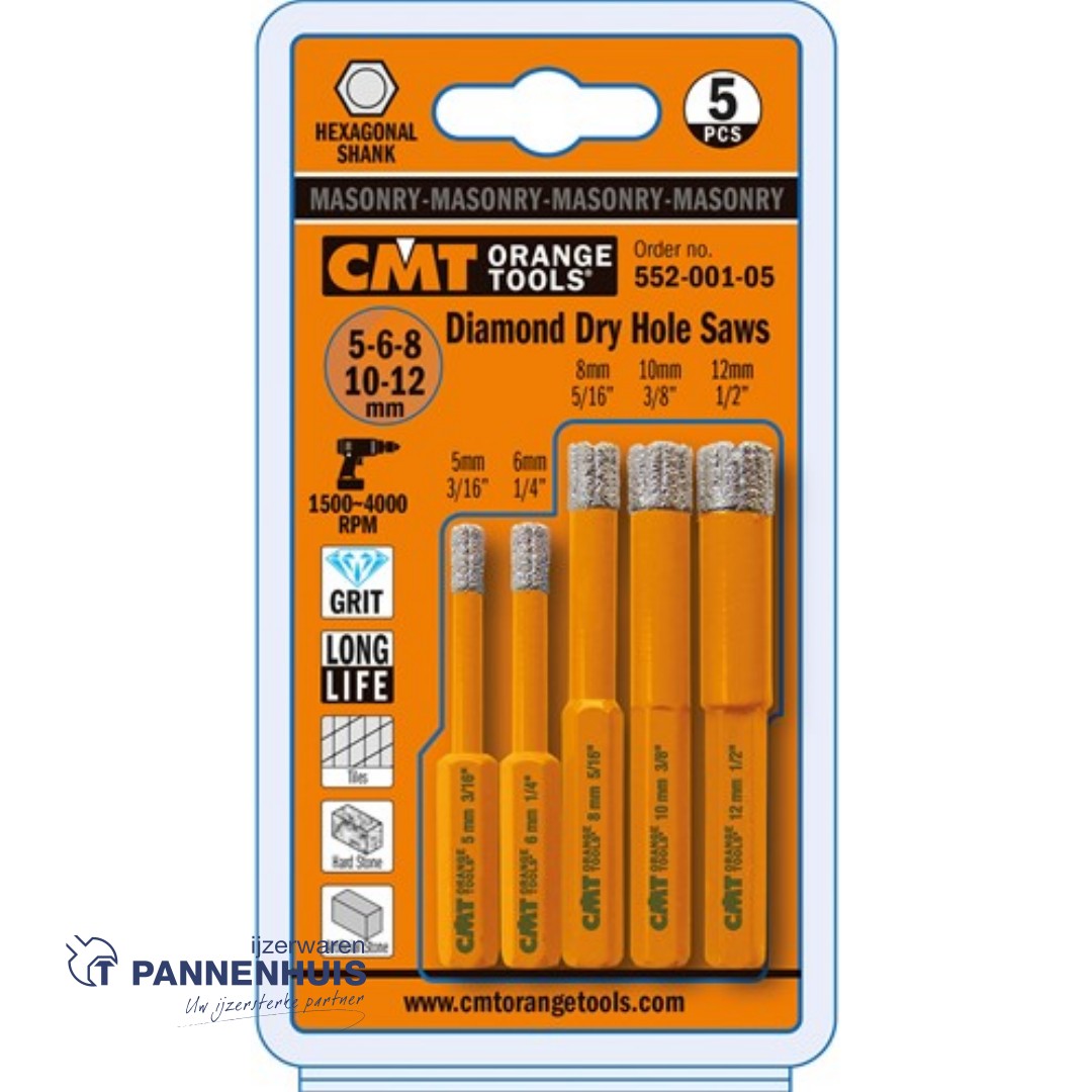 CMT Set gatzagen voor extreem harde materialen D=5 6 8 10 12mm