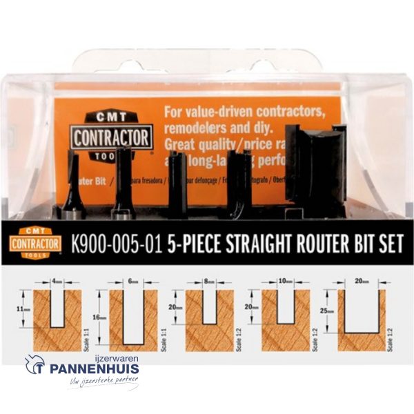 CMT Set van 5 frezen Contractor in pvc kistje HW S=8mm D=4/ 6/ 8/ 10/ 20mm