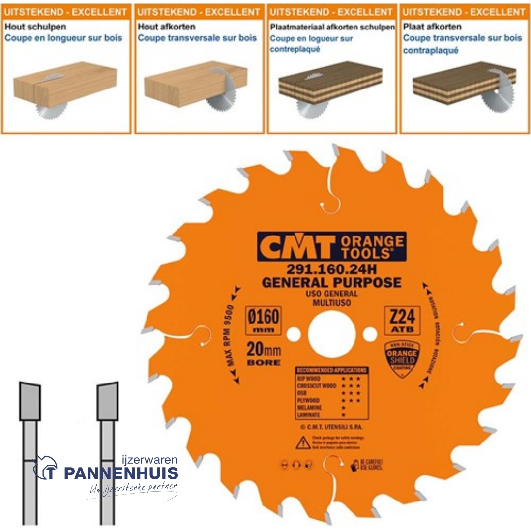 CMT Universele cirkelzaag HW 160x20x2,2 Z24 Massieve houtsoorten, Multiplex
