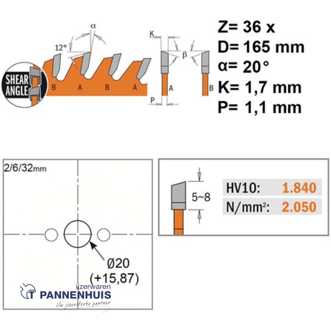CMT Universele cirkelzaag HW 165×20(+15,87)x1,7 Z36 Massieve houtsoorten, Multiplex