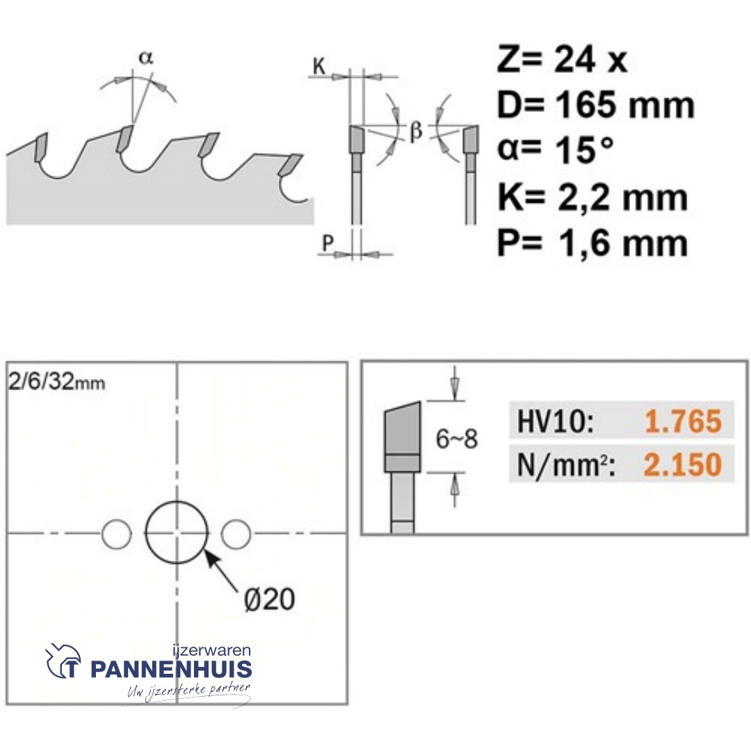 CMT Universele cirkelzaag HW 165x20x2,2 Z24 Massieve houtsoorten, Multiplex