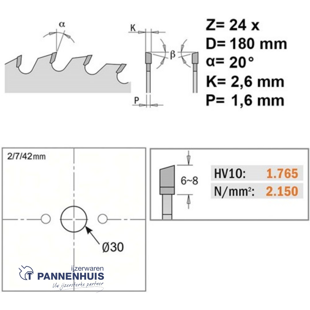 CMT Universele cirkelzaag HW 180x30x2,6 Z24 Massieve houtsoorten, Multiplex
