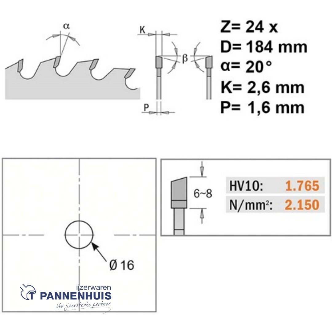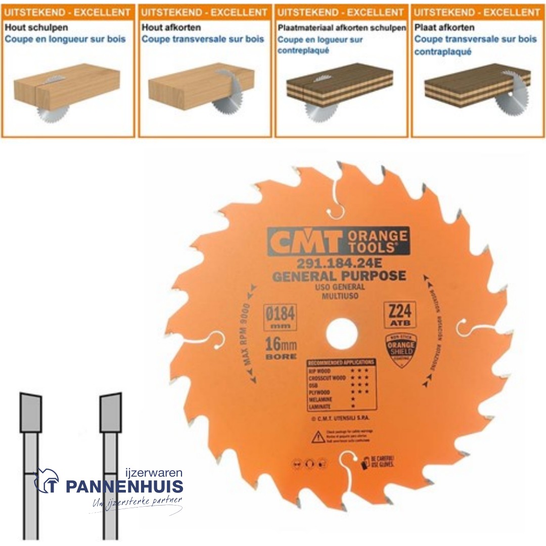CMT Universele cirkelzaag HW 184x16x2,6 Z24 Massieve houtsoorten, Multiplex