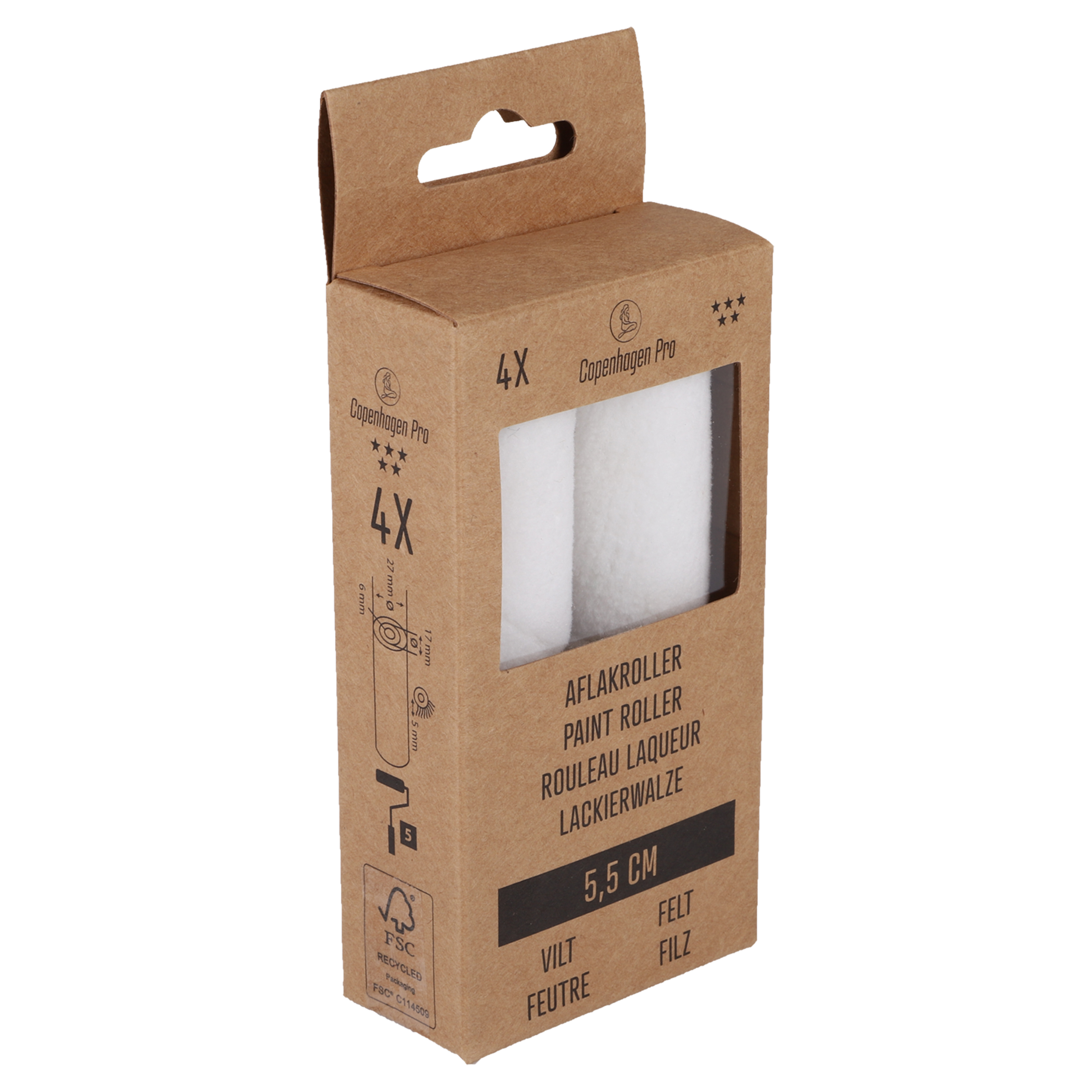 Copenhagen Pro aflakroller vilt – 5 mm poolhoogte – 5.5 cm – wit (4 stuks)