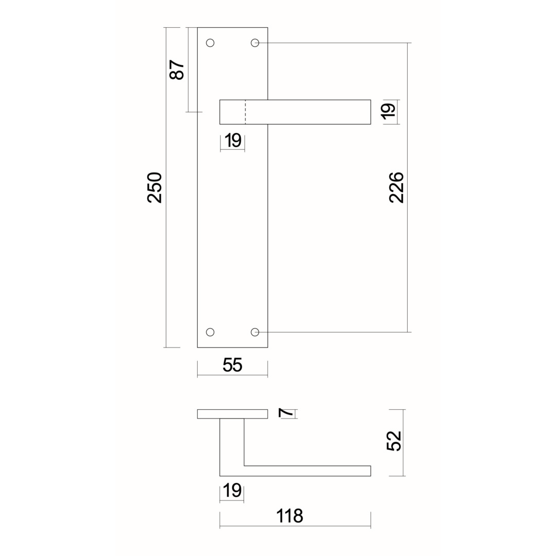 Set van 2 deurkrukken op plaat blind/zonder opening