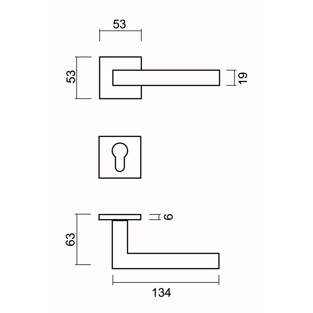 DEURKRUK PRO FLAT KUBIC SHAPE 19MM INOX PLUS R+E CYL