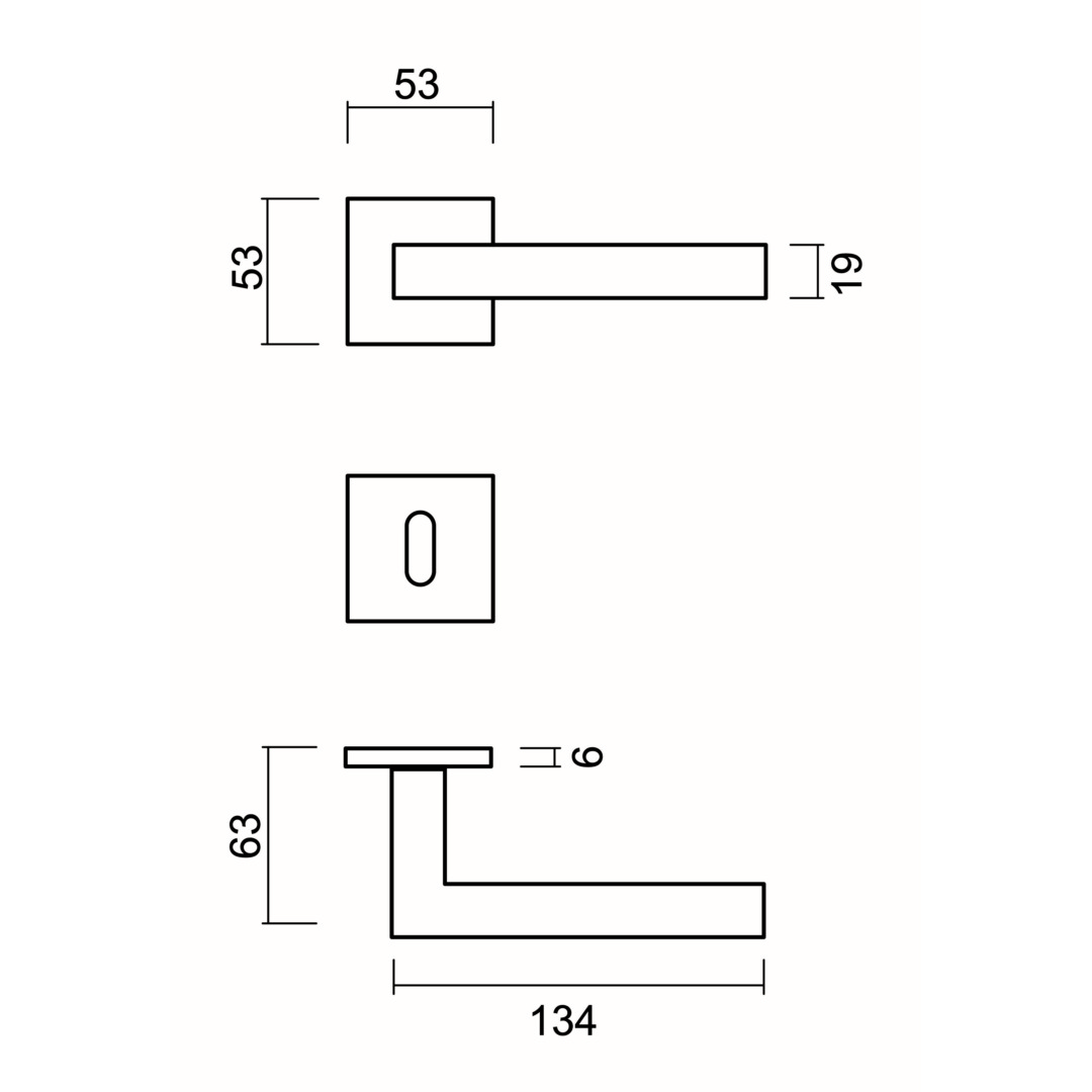 DEURKRUK PRO FLAT KUBIC SHAPE 19MM INOX PLUS R+E