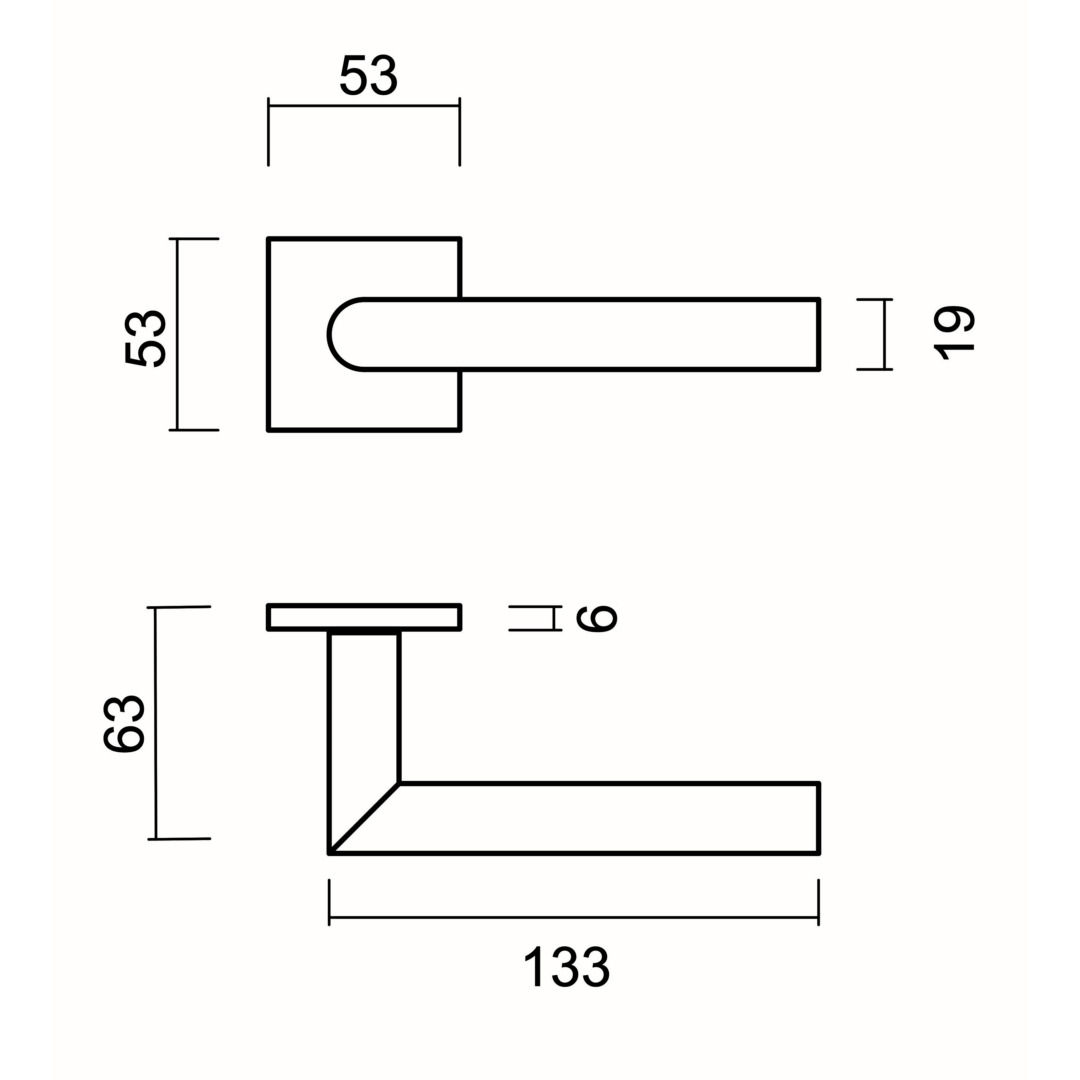 DEURKRUK PRO FLAT SQUARE I SHAPE 19MM INOX PLUS R+NO KEY