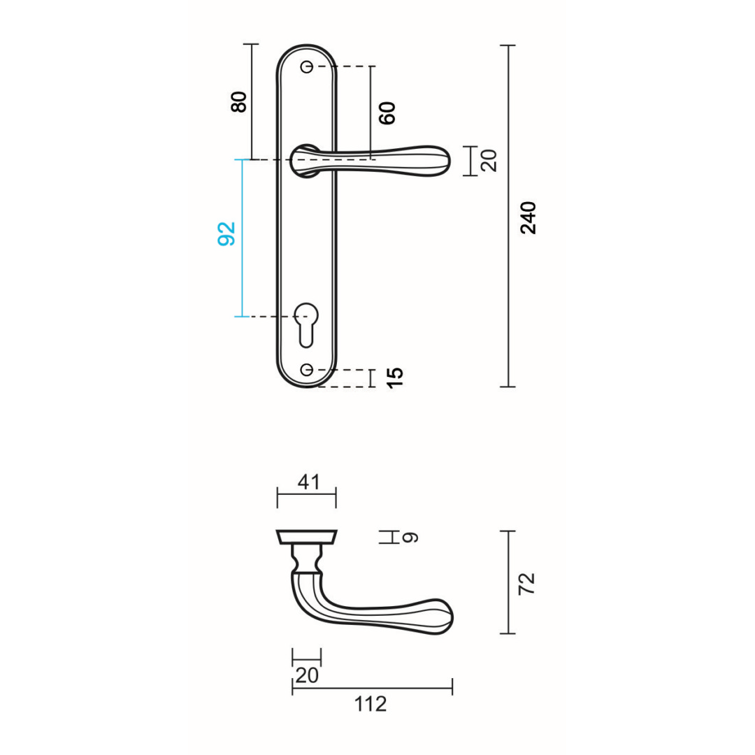 DEURKRUK PRO GRETA BRONS PLAAT+CYL 92MM