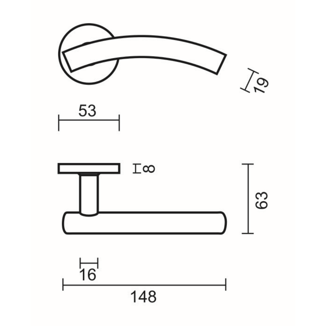 DEURKRUK PRO GT SHAPE 19MM INOX PLUS R+NO KEY
