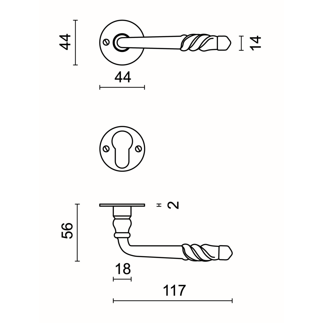 DEURKRUK PRO HARMONIE IJZER ROND R+E CYL