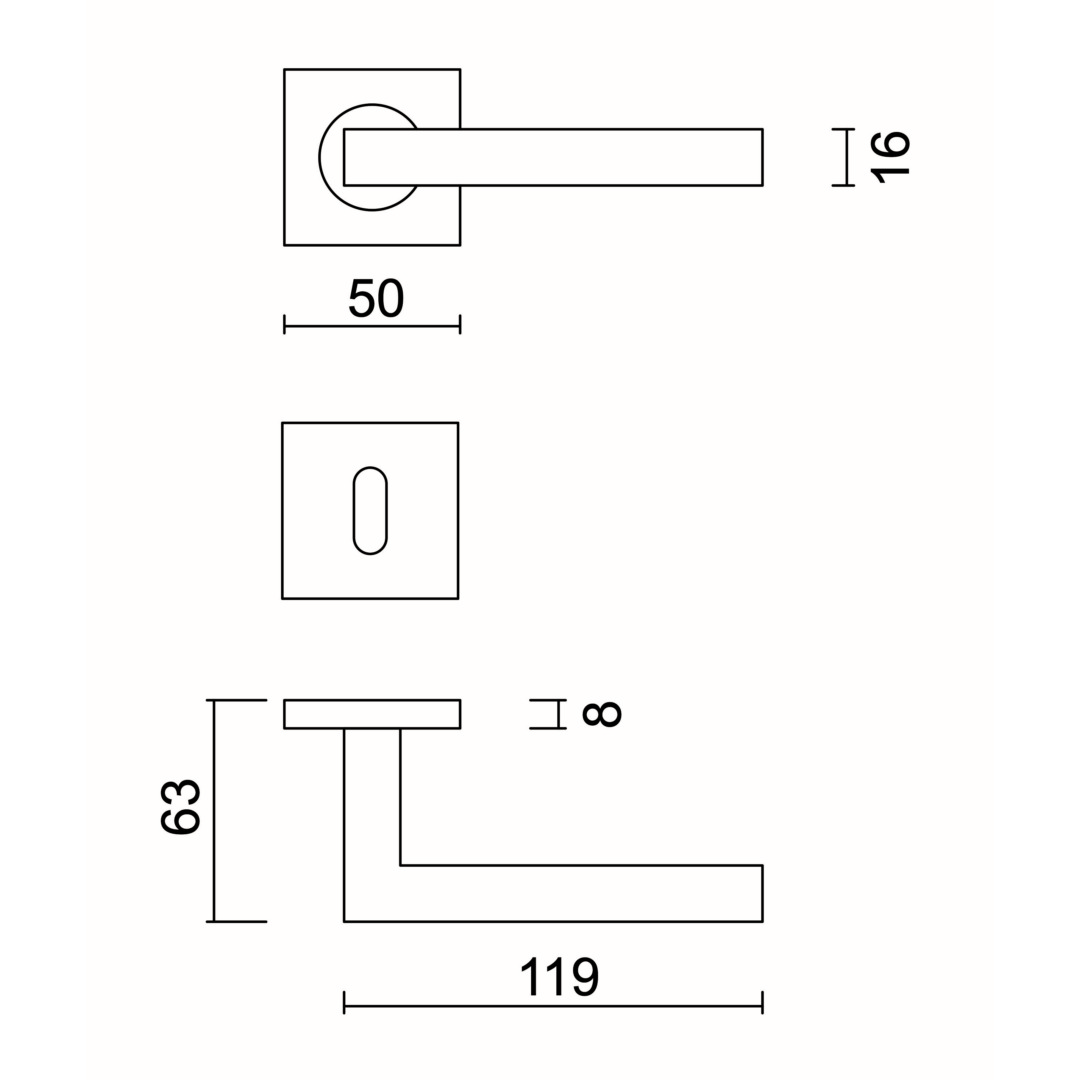 DEURKRUK PRO KUBIC SHAPE 16MM INOX PLUS R+E