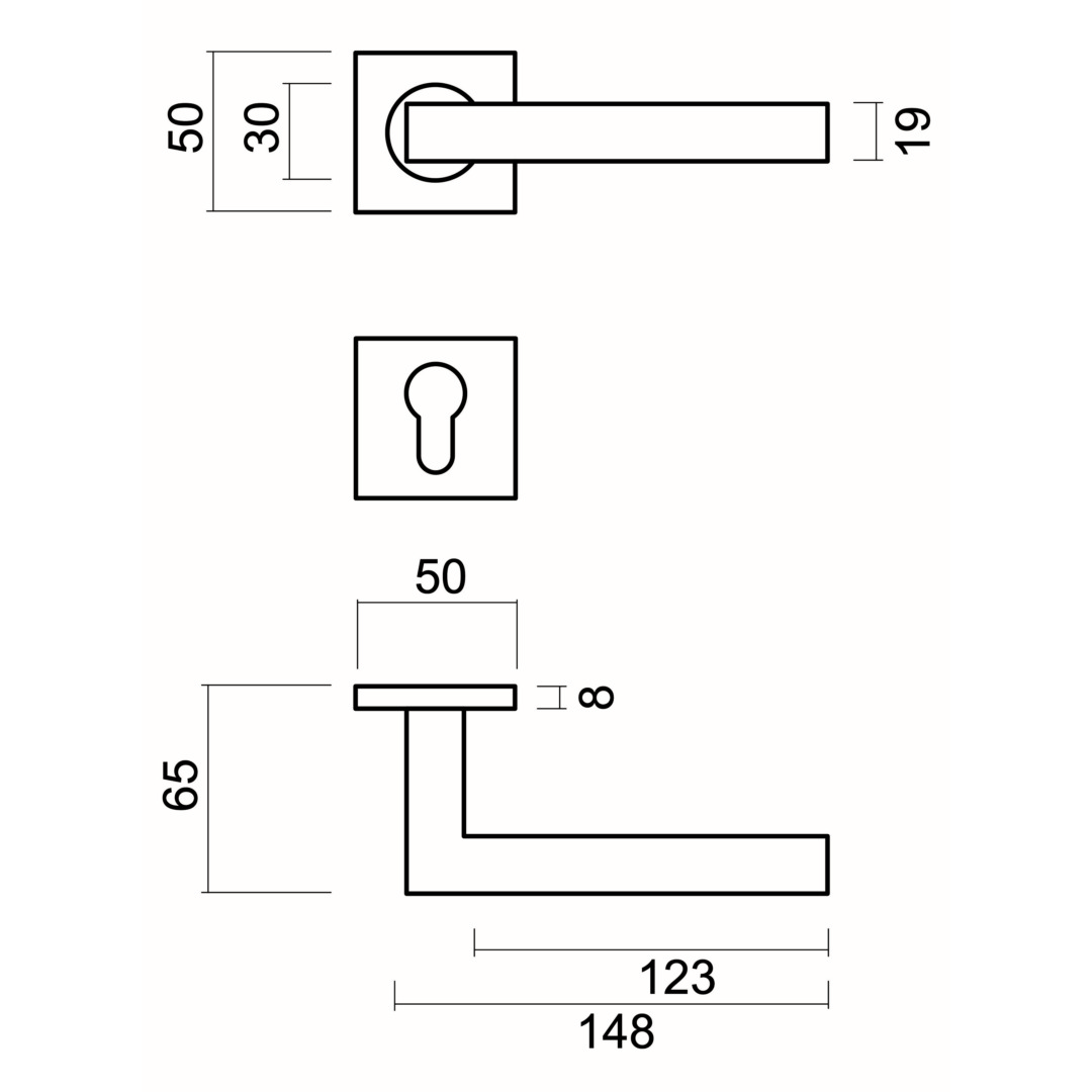 DEURKRUK PRO KUBIC SHAPE 19MM INOX PLUS R+E CYL