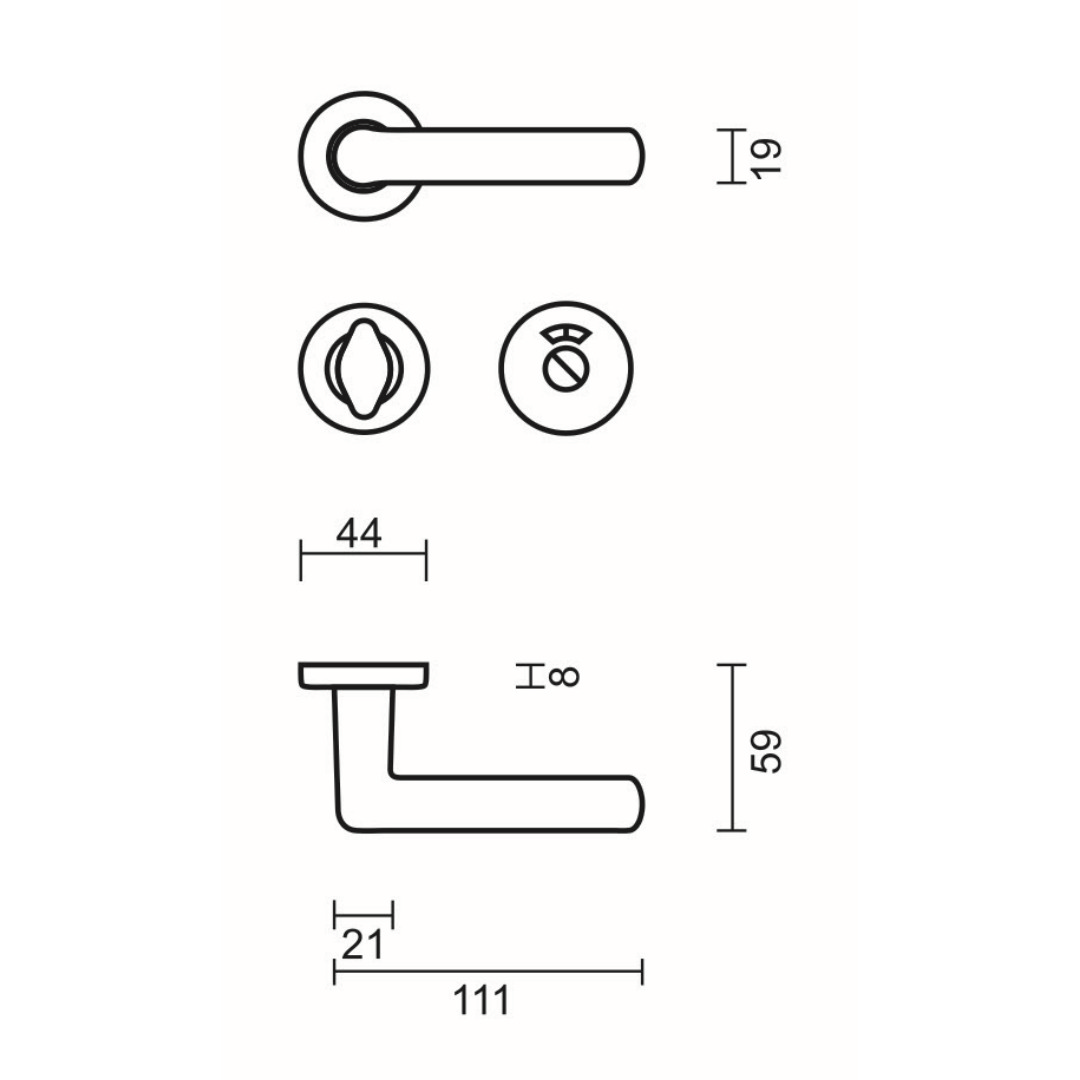 Bevestigingsmateriaal geschikt voor deurdikte van 38-45mm