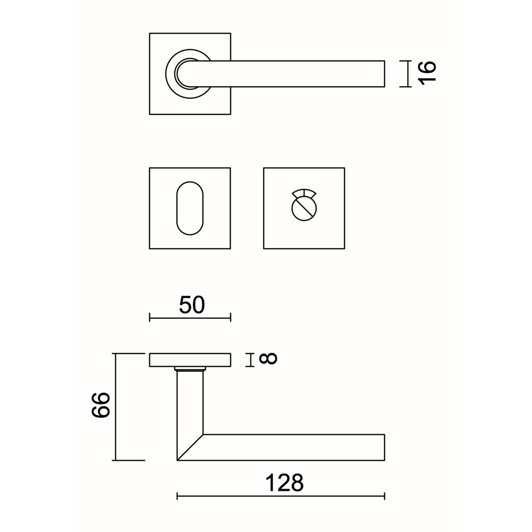 DEURKRUK PRO SQUARE I SHAPE 16MM INOX PLUS R+WC