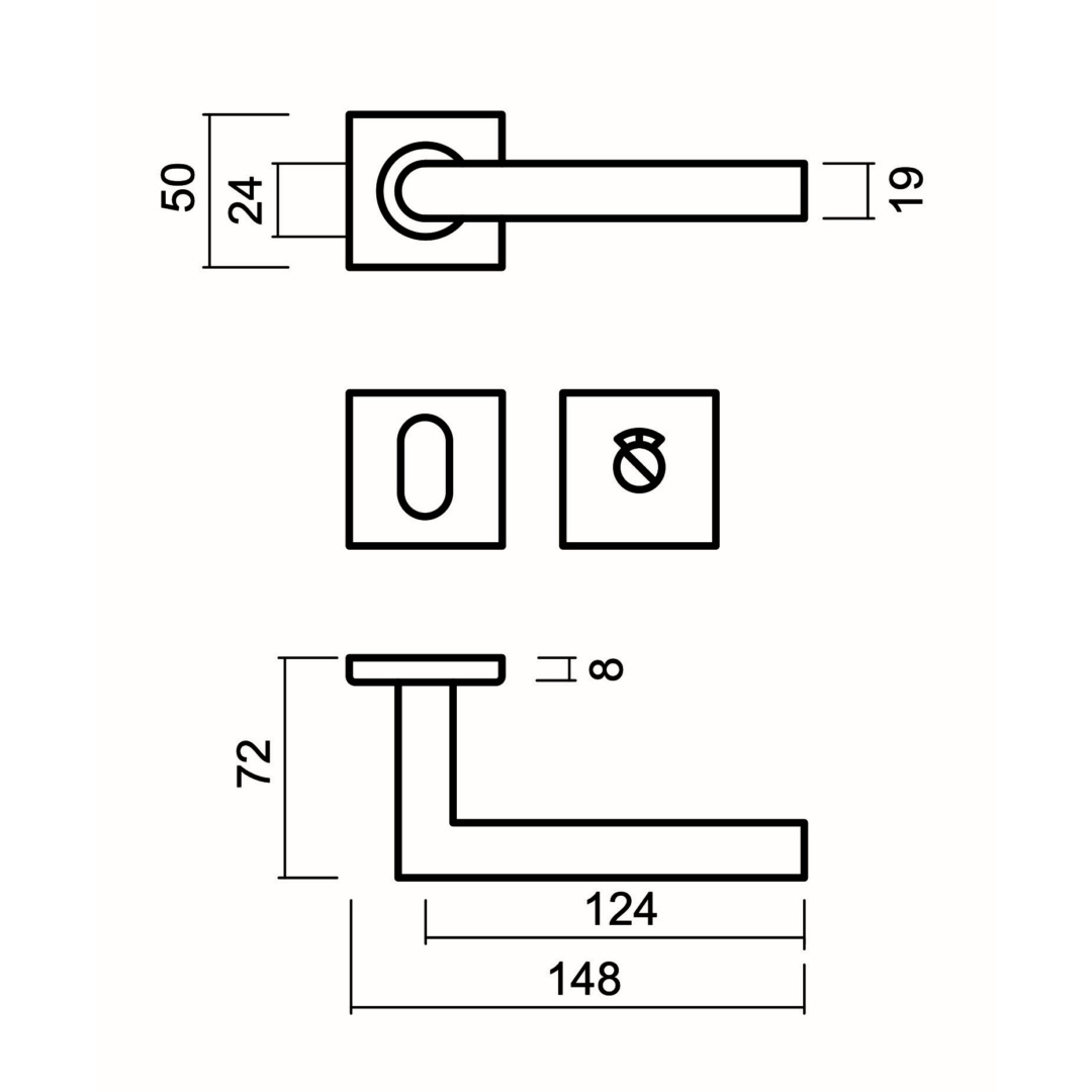DEURKRUK PRO SQUARE I SHAPE 19MM INOX PLUS R+WC