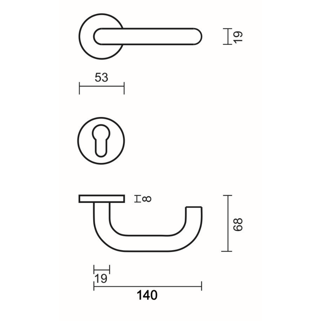DEURKRUK PRO U SHAPE 19MM INOX PLUS R+E CYL