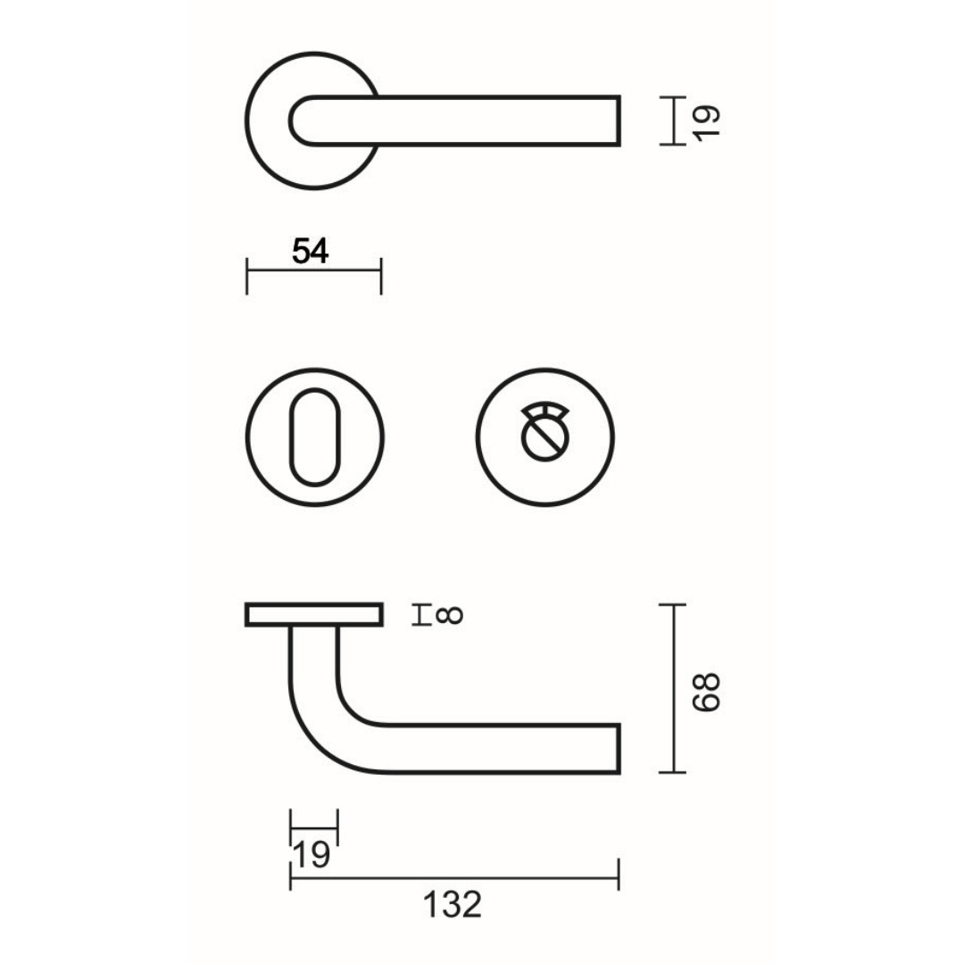 DEURKRUK PRO ZERO L SHAPE 19MM INOX R+WC
