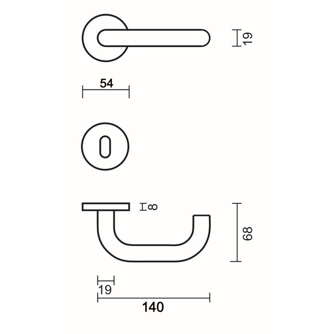DEURKRUK PRO ZERO U SHAPE 19MM INOX R+E