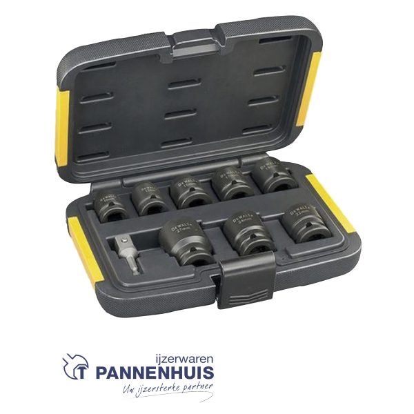 Dewalt Doppenset 9-delig (10,13,15,17,19,22,24,27mm1/4″ naar 1/2″ Adapter)