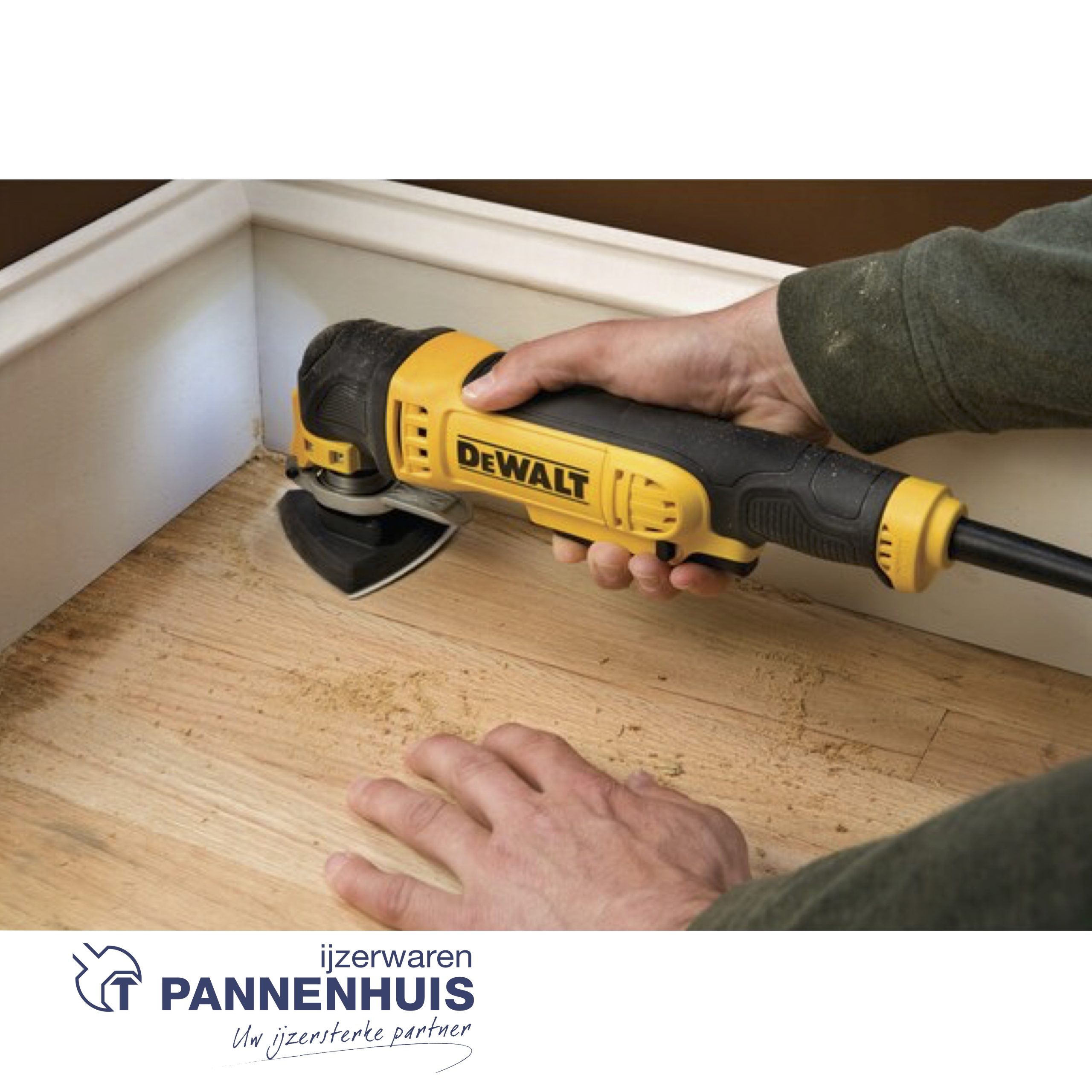 De DEWALT DWE315 Oscillerende Multi-Tool wordt geleverd met een 37-delige accessoireset en is uitgerust met een snelwisselsysteem voor snel wisselen van opzetstukken. Met een krachtige motor van 300 watt die tot 22.000 trillingen per minuut levert, kan het oscillerende gereedschap een breed scala aan snij- en schuurtoepassingen uitvoeren.