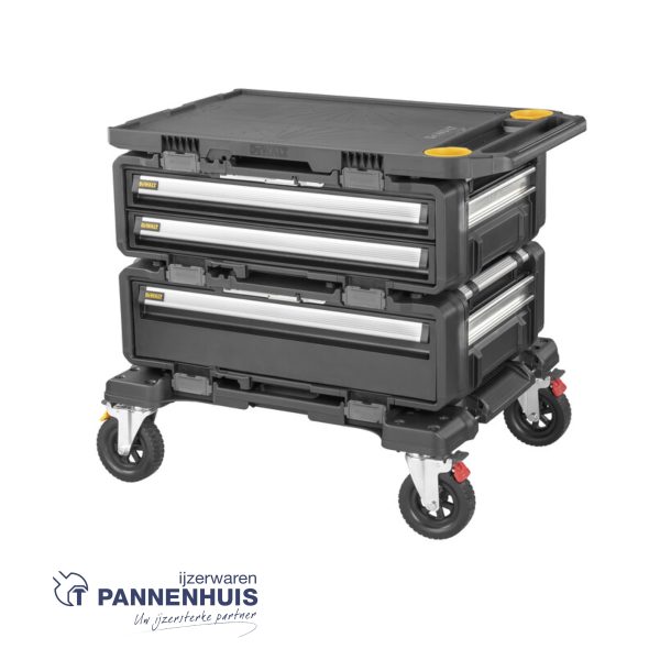 Berg op, beveilig, vervoer en werk met de TOUGHSYSTEM® 2.0 DXL™ Modulaire gereedshapskar. Bestaande uit 4 afzonderlijke modules die op verschillende manieren kunnen worden opgesteld, is dit werkstation anders dan alles wat momenteel beschikbaar is voor op de bouwwerf. Het geheel is een robuuste modulaire gereedschapskar, met veelzijdige lade-opties en een functioneel werkblad en vormt een alles-in-één werkstation. Al je gereedschap bij de hand en toegankelijk, waar de klus je ook brengt.