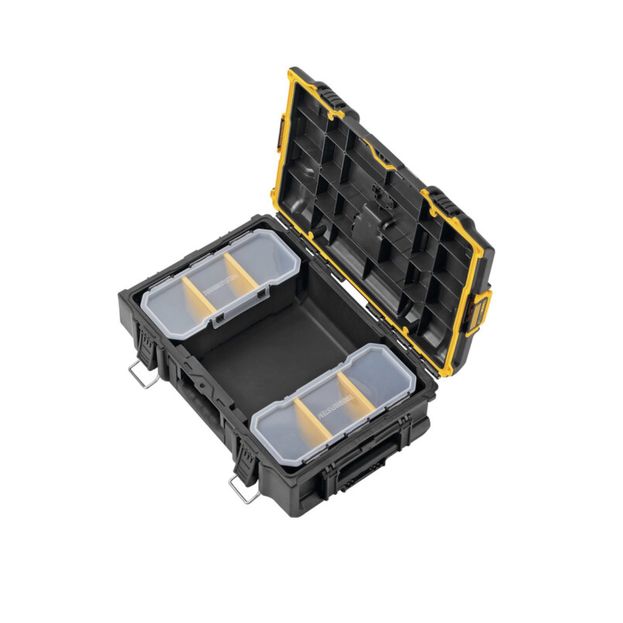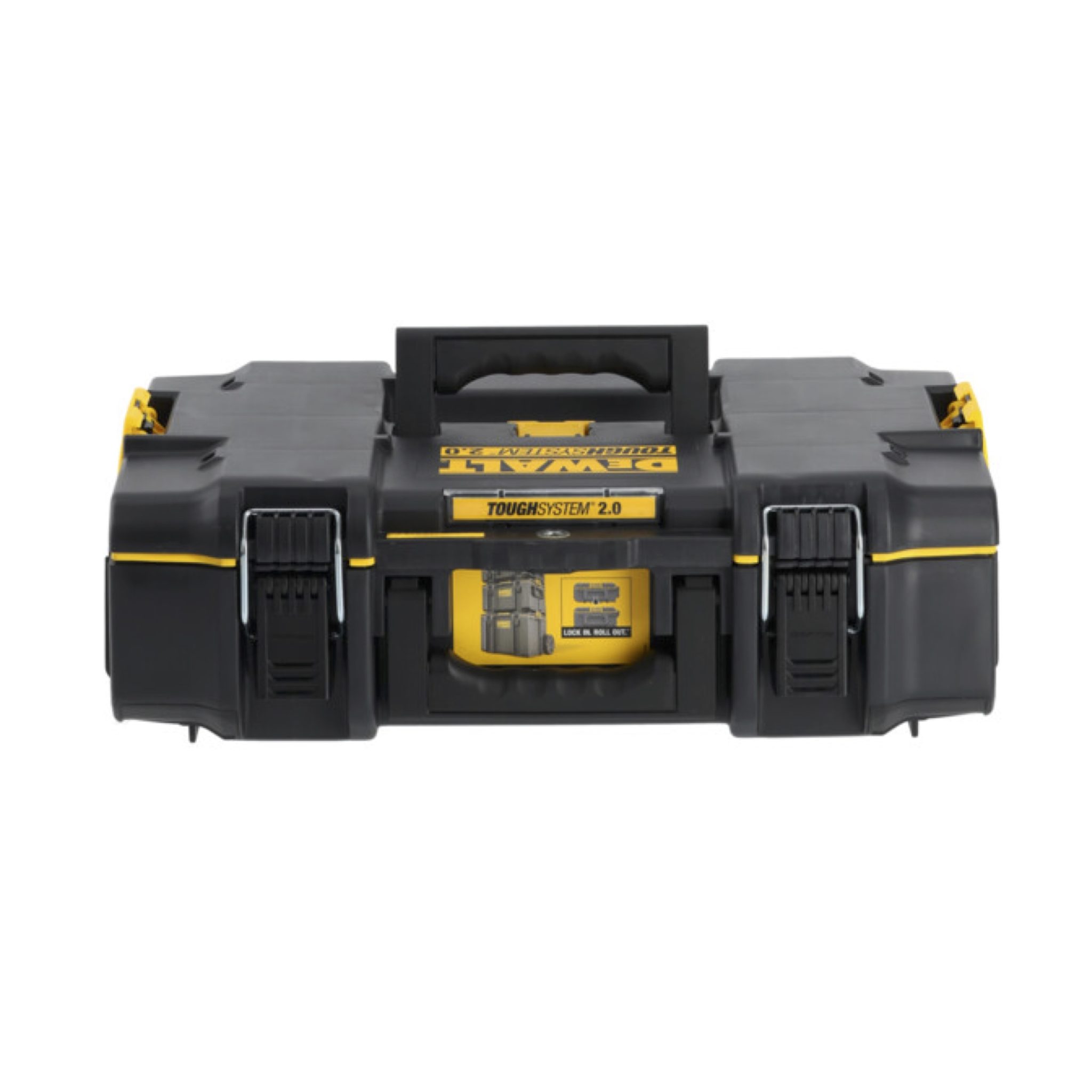 De ToughSystem 2.0 DS166 Toolbox heeft gepatenteerde auto-connect zijvergrendelingen, waardoor bediening met één hand mogelijk is. Het heeft ook 2-delige metalen sluitingen aan de voorkant voor extra duurzaamheid bij het vastzetten van gereedschap in de doos. Deze gereedschapskoffer biedt 20% meer gereedschapsopslag bij gebruik als onderdeel van een toren met de 2.0 DS300 en DS400. Het is IP65 geclassificeerd voor stof- en waterbestendigheid en heeft een gewicht van 50kg laad capaciteit. De gereedschapskoffer bevat aan de binnenkant 2 grote organizercups met uitneembare verdelers voor een optimale organisatie. De ToughSystem 2.0 Toolbox is compatibel met alle ToughSystem-producten.