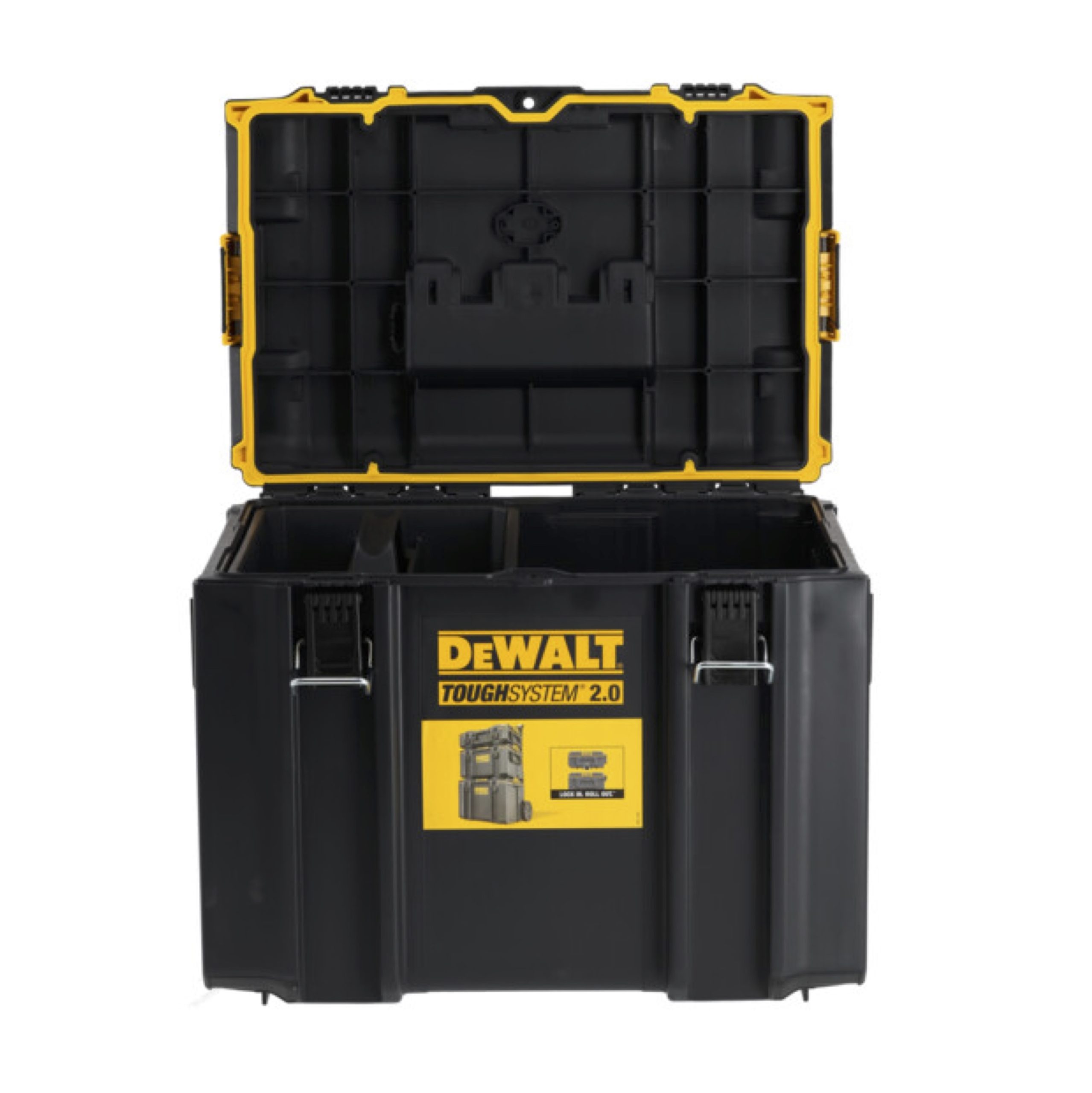 De ToughSystem 2.0 DS400 gereedschapskoffer is voorzien van gepatenteerde zijvergrendelingen voor eenvoudige bediening met één hand. De koffer heeft een IP65-classificatie voor stof- en waterdichtheid en een laadcapaciteit van 50 kg. De gereedschapskoffer heeft een uitneembare binnenbak om je materiaal beter te organiseren. Gebruik in combinatie met het DEWALT® TOUGHSYSTEM® assortiment om een opslagsysteem te creëren dat net zo uniek is als uw beroep of vak. Thoughsystem®, aangepast aan de ruwste omstandigheden.