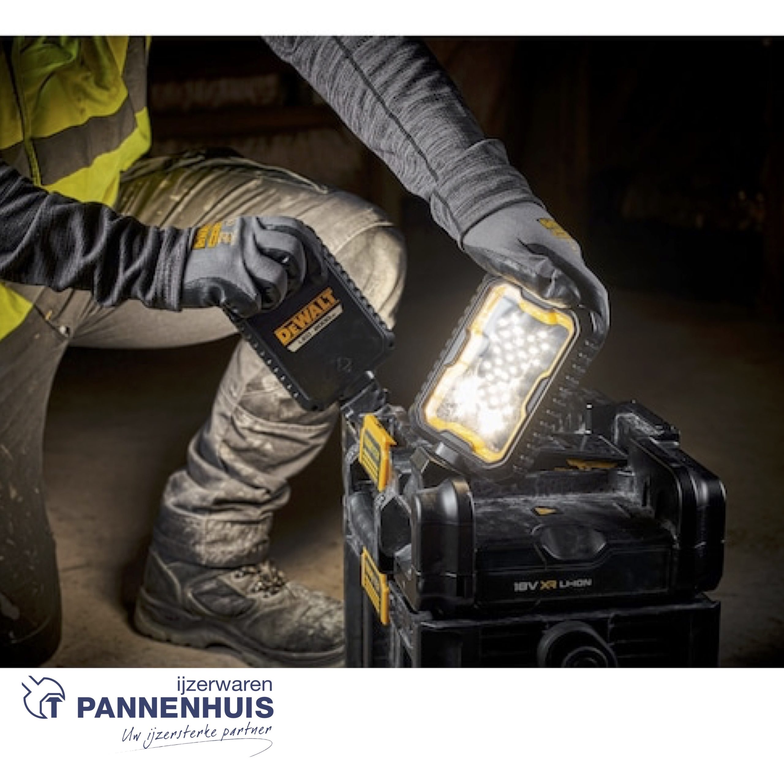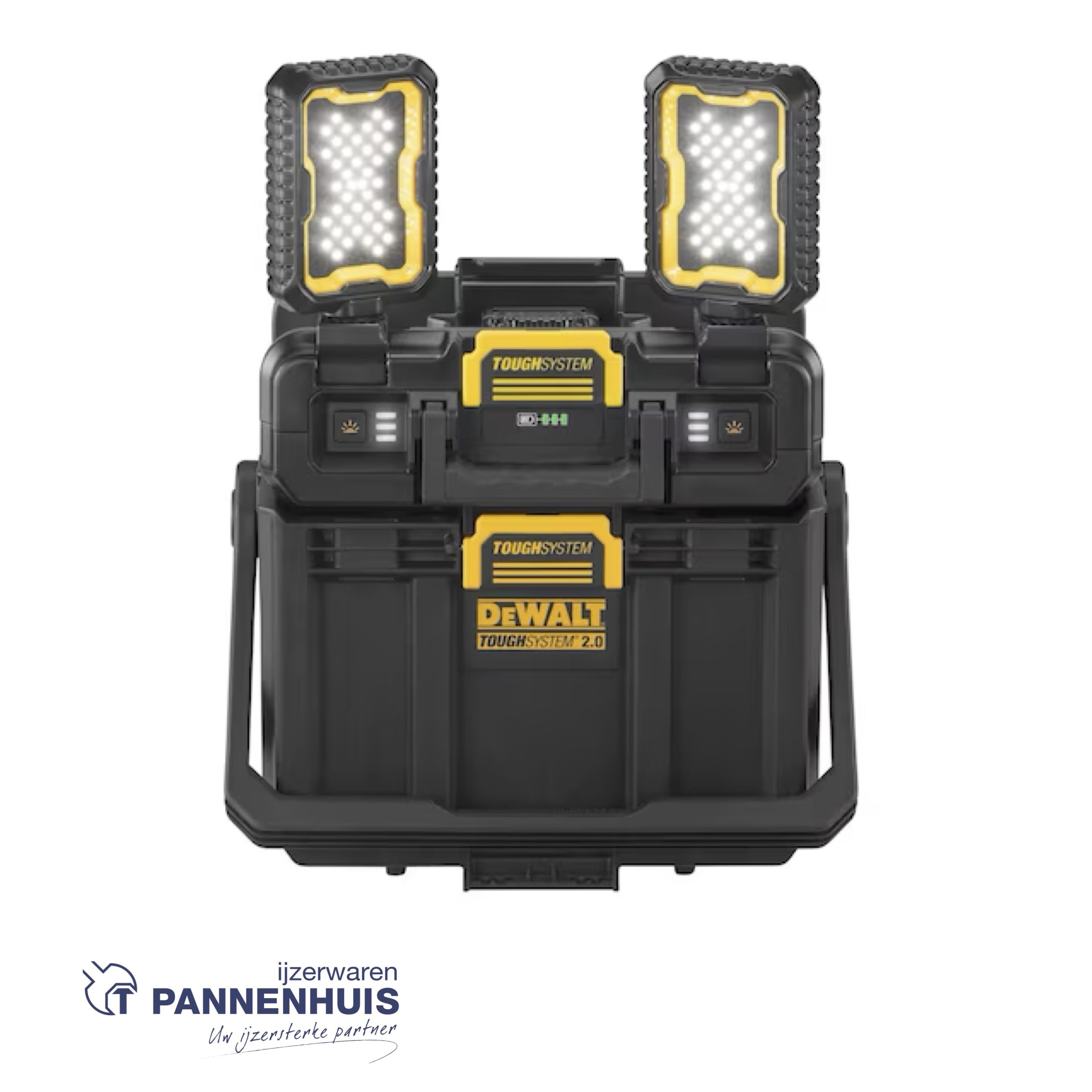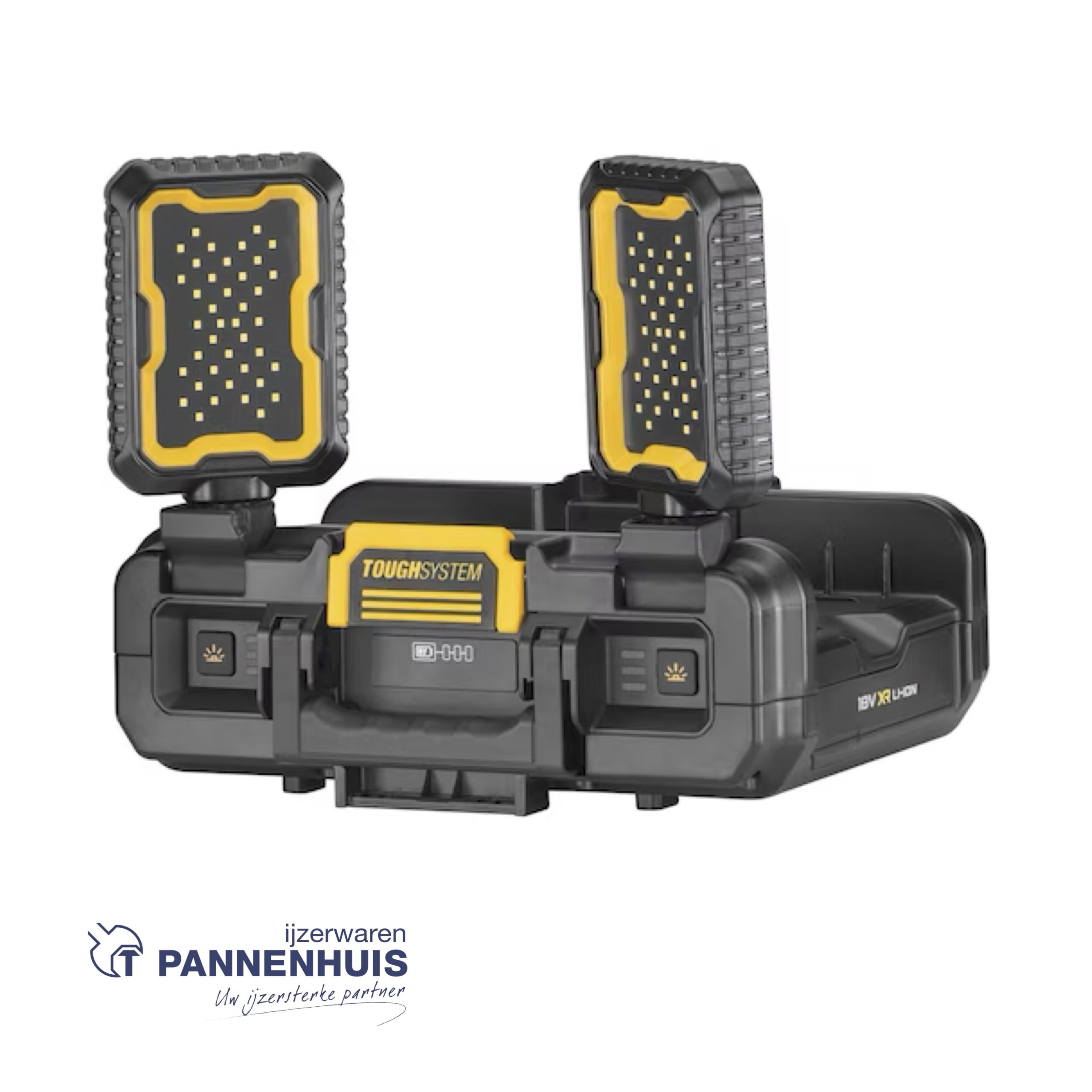 Verlicht werkgebieden en houd essentieel gereedschap binnen handbereik met het DEWALT® TOUGHSYSTEM® 2.0 verstelbare werklamp met opbergvak. Deze modulaire verlichtingsoplossing wordt van stroom voorzien door 18V accu’s en heeft 2 draaibare LED-koppen die tot 3 uur autonomie* bieden. Met voldoende opbergruimte, een geïntegreerde inklapbare handgreep en een duurzaam ontwerp biedt dit TOUGHSYSTEM®-compatibele product de veelzijdigheid die nodig is voor veeleisende werkterreinen.
