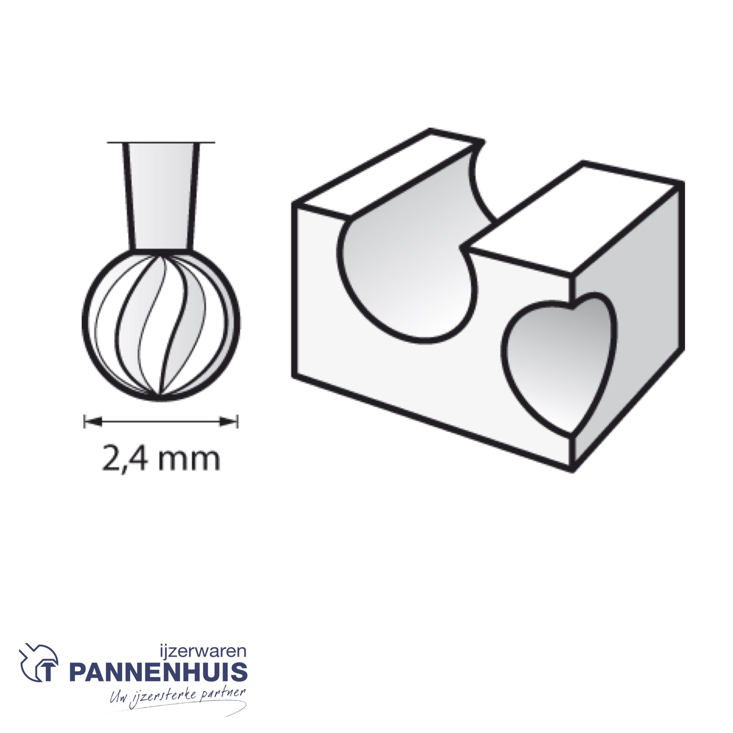 Kleine bolvormige kop voor gedetailleerde uitsnijdingen, minutieus graveren op bijv. hout