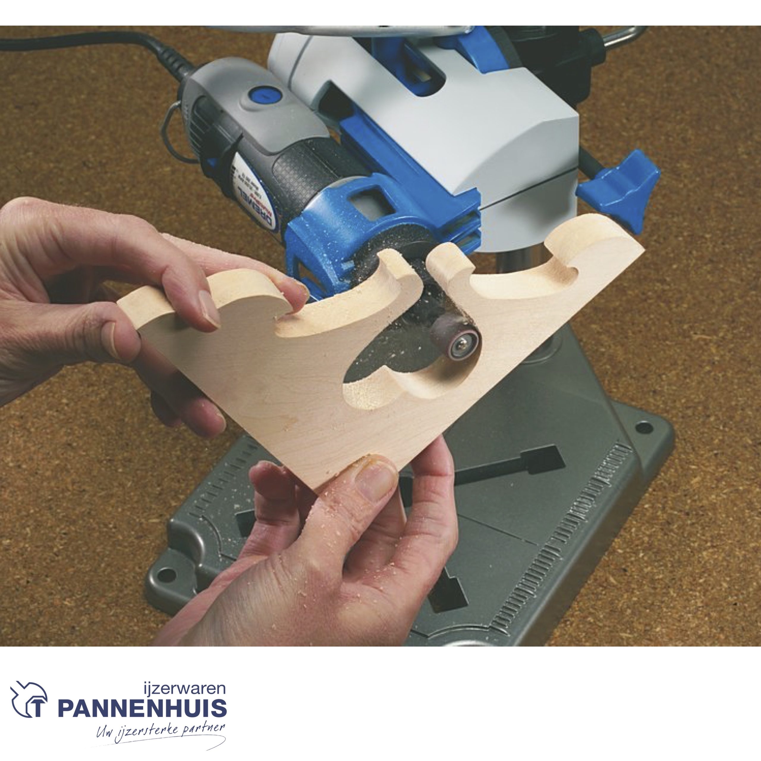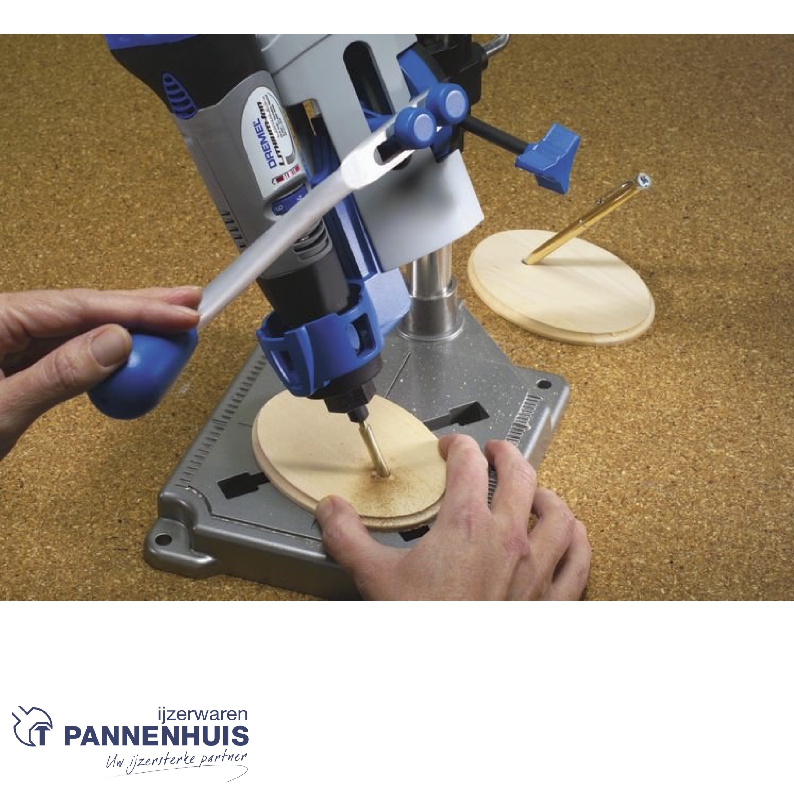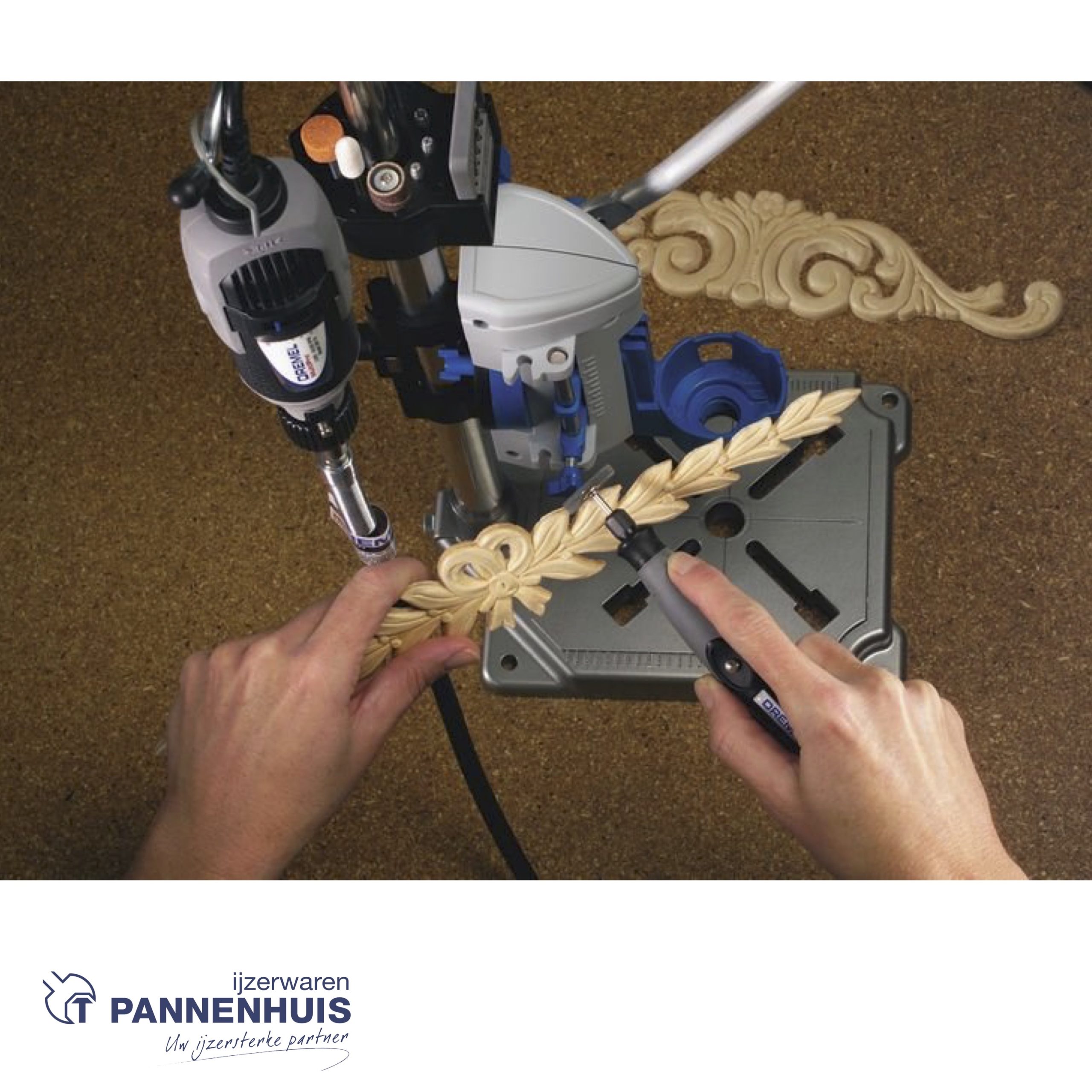 Deze gecombineerde boorstandaard en gereedschaphouder is de perfecte oplossing voor stationair werken met uw Dremel.