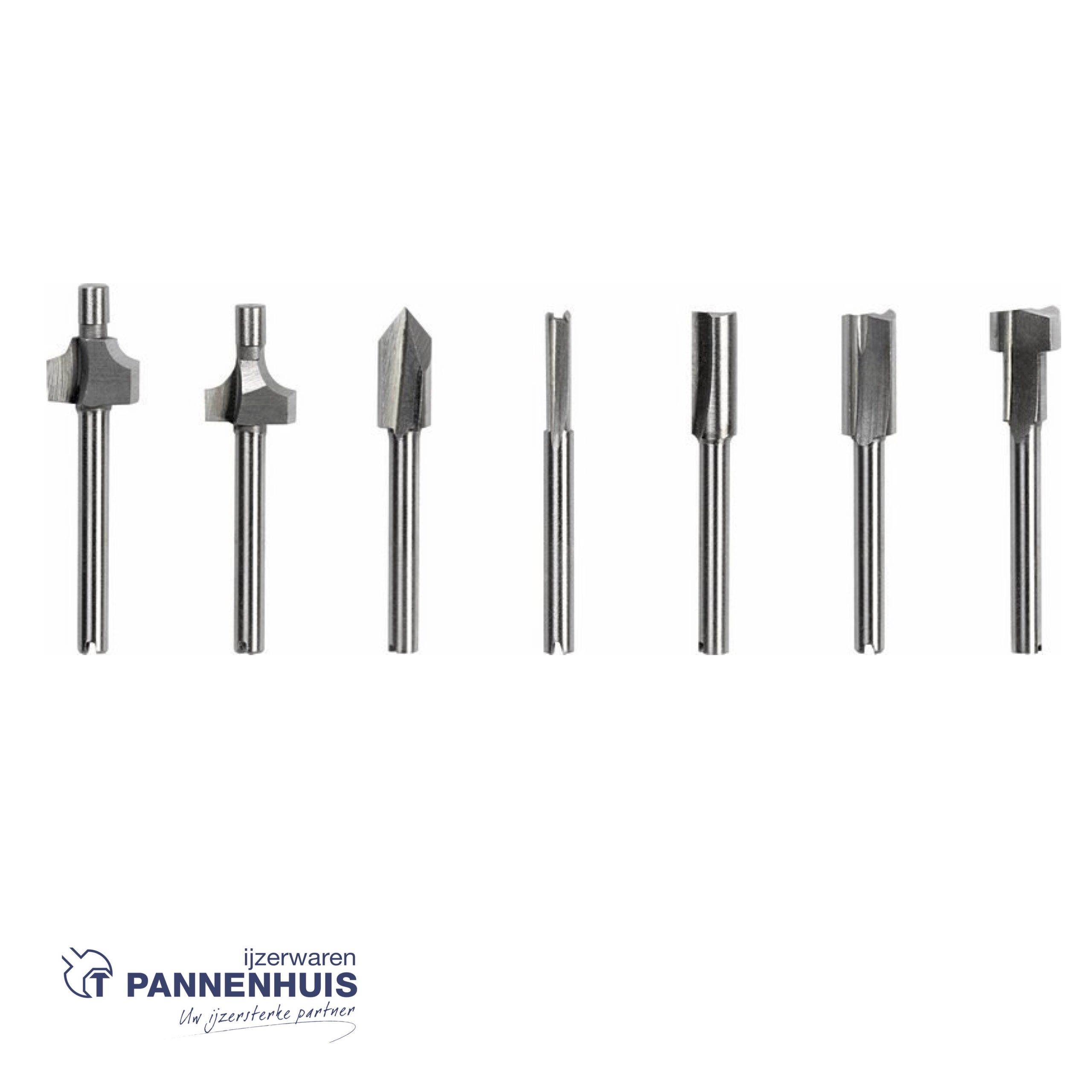 De 7-delige Dremel multifunctionele frezenset bevat de zeven hoogwaardige freesaccessoires van Dremel. Met deze accessoireset kunt u kantenfrezen, hoekfrezen, recht frezen, gatfrezen, letters frezen en nog veel meer in een groot aantal materialen waaronder hardhout, zacht hout, multiplex en laminaat. Frees sleuven in deuren voor de bevestiging van nieuwe deurgrepen, ontwerp en frees uw eigen keukenkastjes of maak uw eigen huisnummer. Bewaar uw accessoires praktisch in de meegeleverde houten doosje.