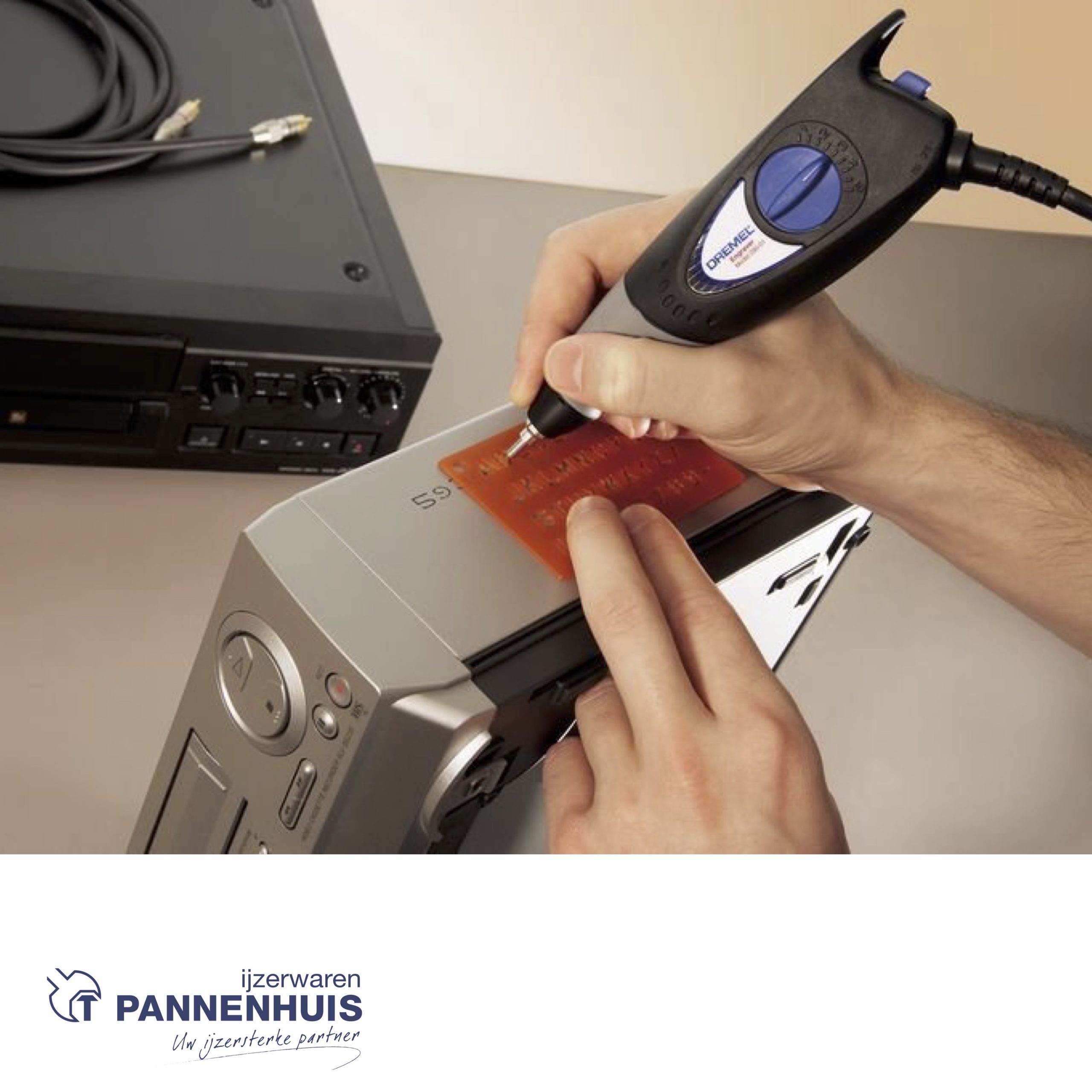 Graveer of versier een groot aantal materialen zoals metaal, kunststof, glas, keramiek, hout en leer. Inclusief een letter- en cijfersjabloon om letters en cijfers eenvoudig te graveren.