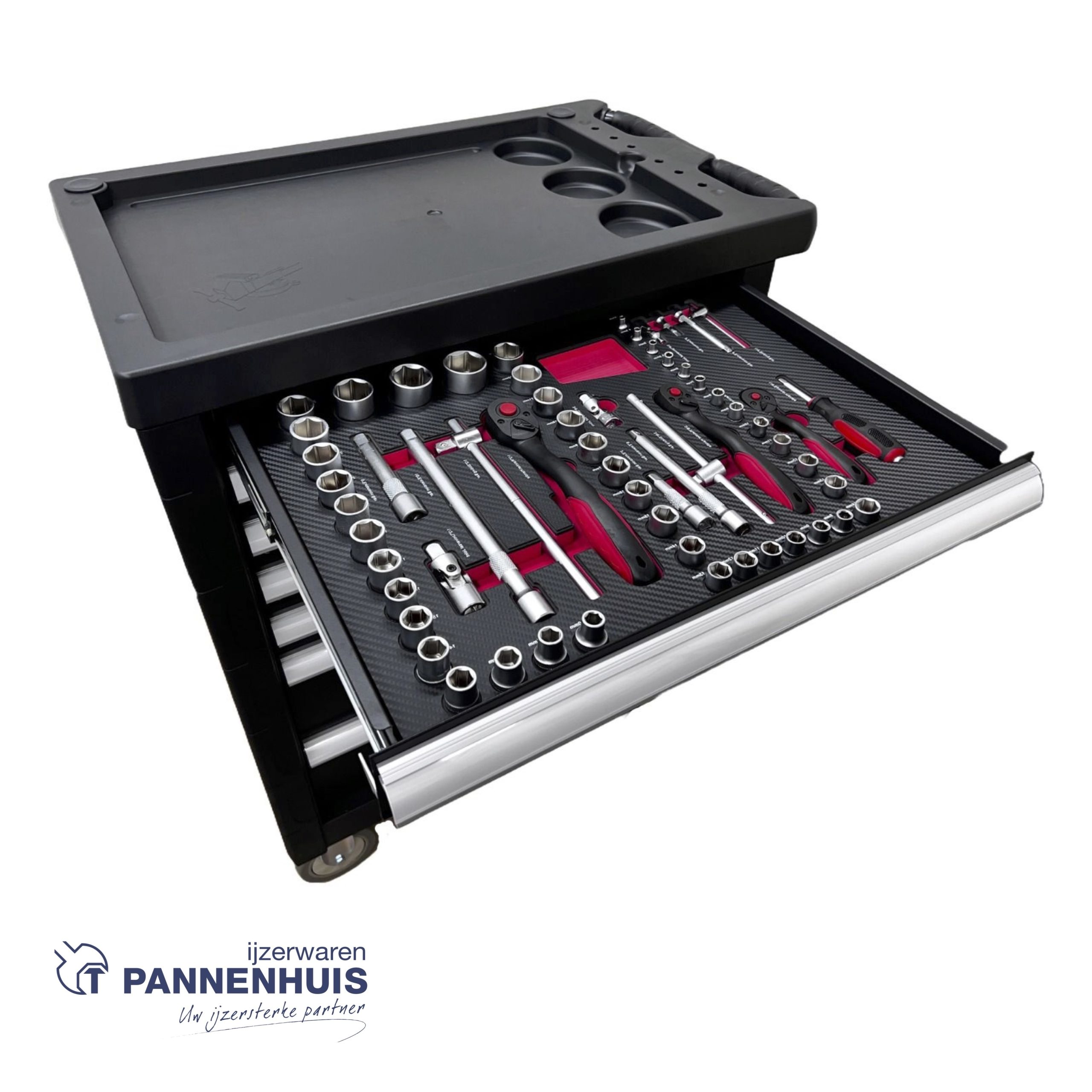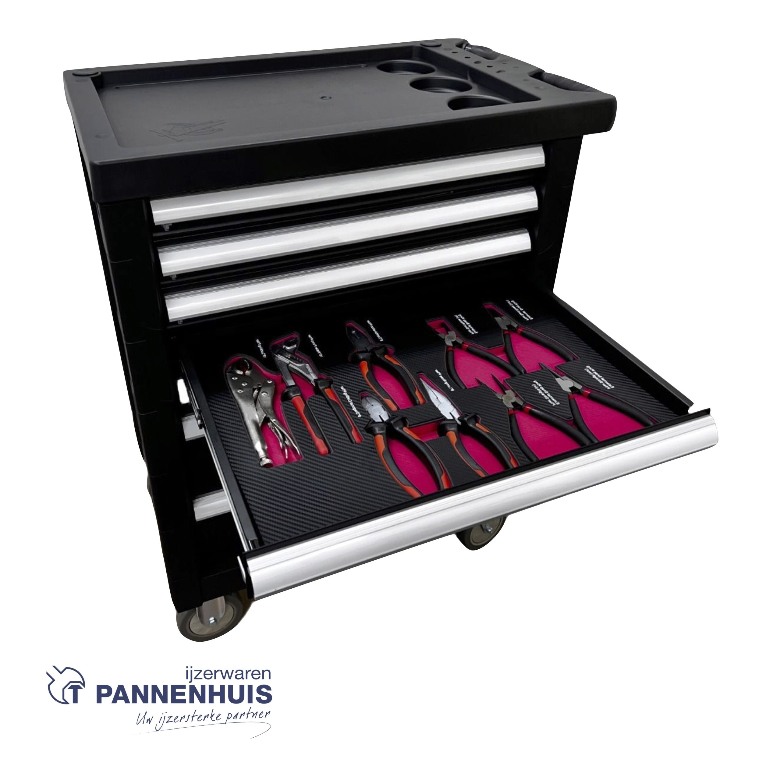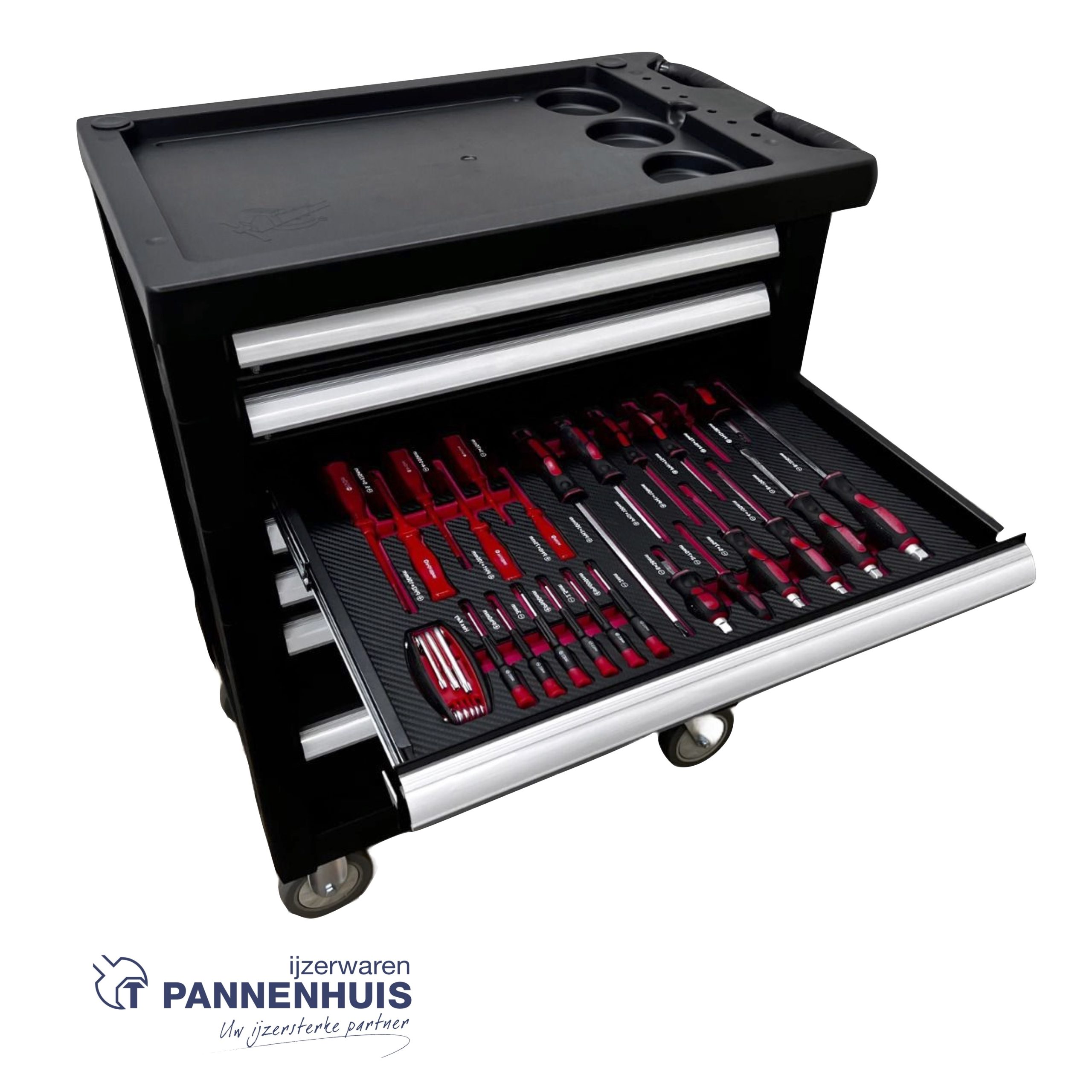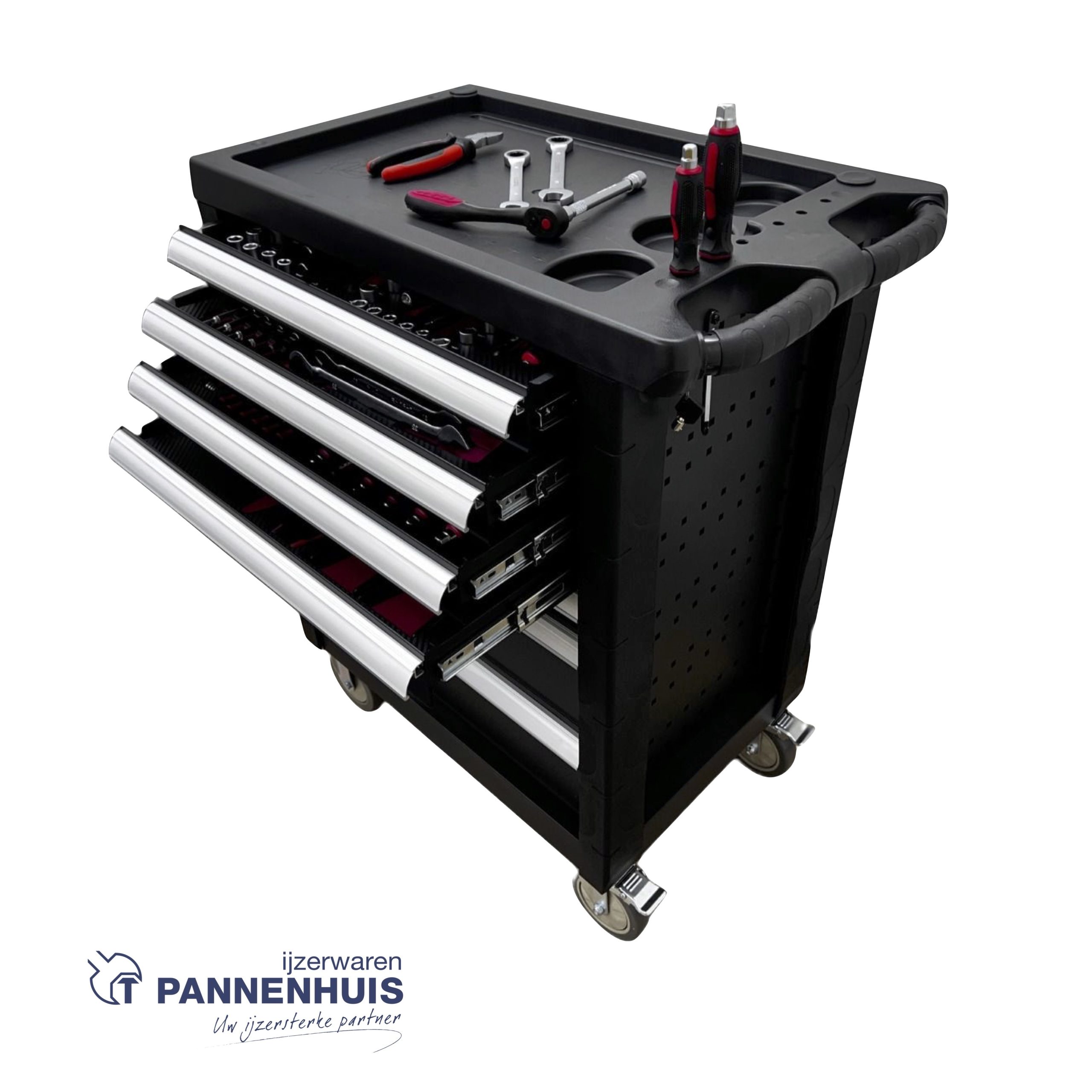 Edwin-Tools gevulde gereedschapswagen, zwart, 154-delig