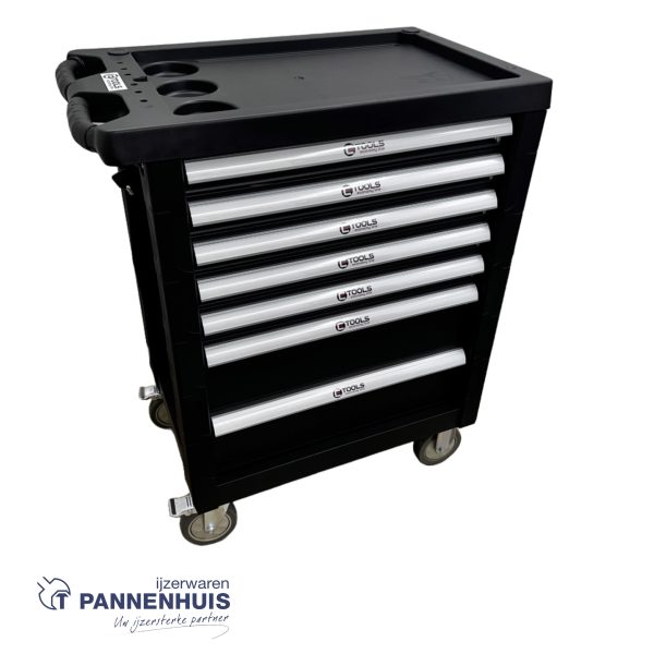 Gereedschapswagen met zeven laden.