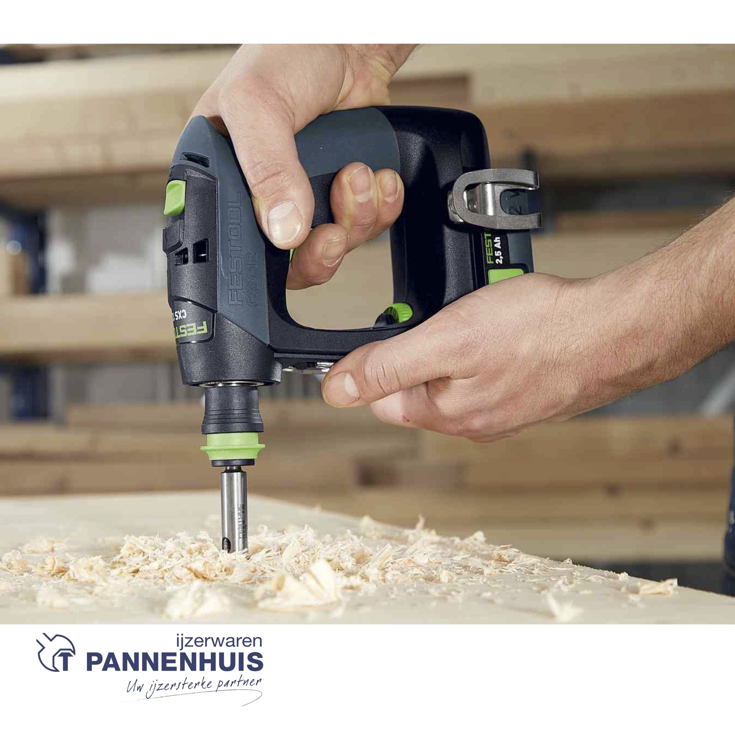 Hoogwaardig lithium-ion-accu-pack met werkstukvriendelijke rubberbekleding, laadindicatie en 2,5 Ah voor lange looptijd in de leveromvang. Compatibel met alle oplaadapparaten van de Festool 18V-accuportfolio