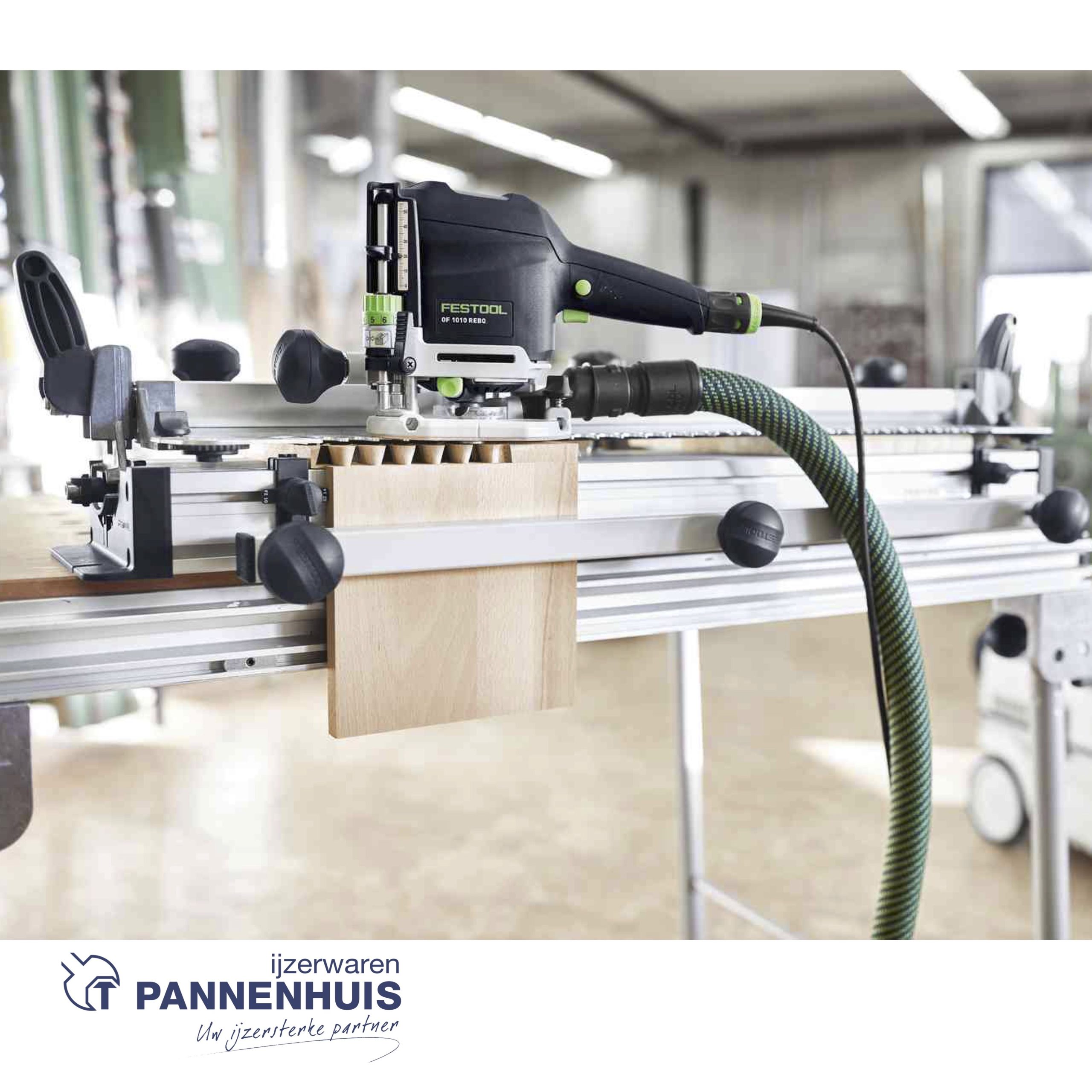In combinatie met het geleidesysteem groeven maken in achterwanden, lijsten aanbrengen of gipskarton frezen (vouwkanttechniek)
