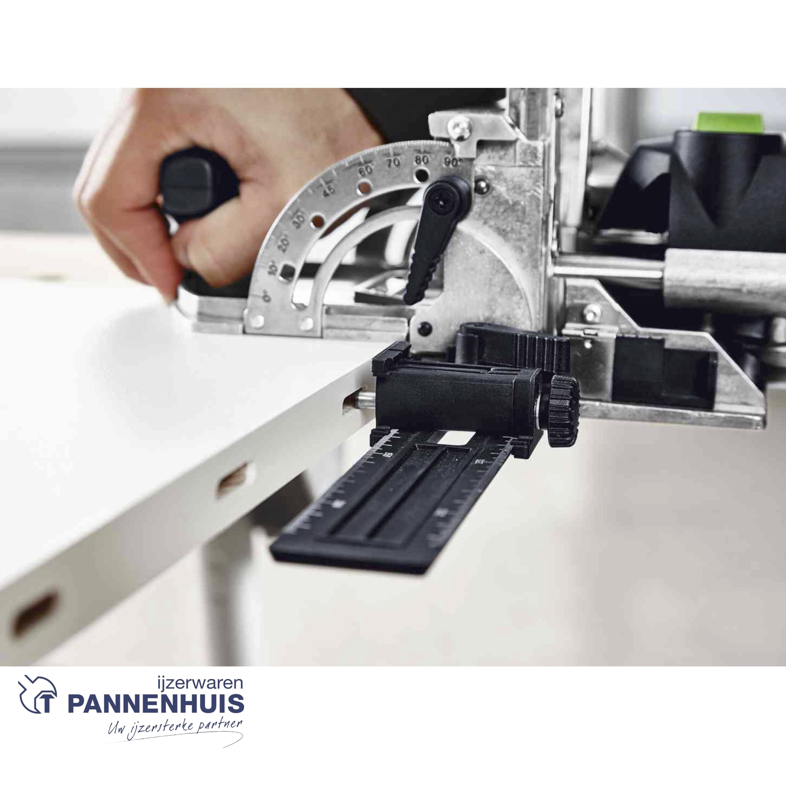 Terugkerende gatafstanden van 100 tot 205 mm kunnen eenvoudig met de dwarsaanslag worden overgedragen zonder het werkstuk af te tekenen.